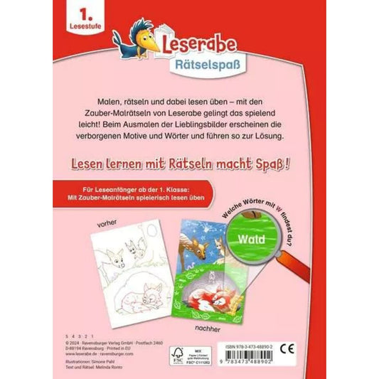 Ravensburger Leserabe Rätselspaß Zauber-Malrätsel zum Lesenlernen: Im Wald (1. Lesestufe)