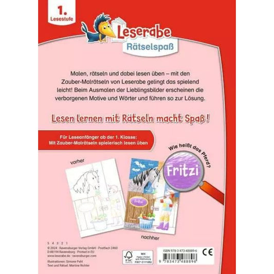 Ravensburger Leserabe Rätselspaß Zauber-Malrätsel zum Lesenlernen: Pferde (1. Lesestufe)