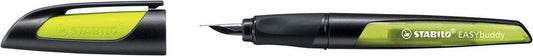Schulfüller mit Anfänger-Feder A - STABILO EASYbuddy in schwarz/limette - Schreibfarbe blau (löschbar) - Einzelstift - inklusive Patrone