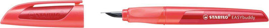 Schulfüller mit Linkshänder-Feder L - STABILO EASYbuddy in koralle/rot - Schreibfarbe blau (löschbar) - Einzelstift - inklusive Patrone