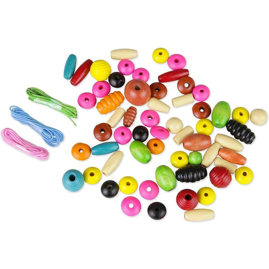 LENA® Bastelset Holzfädelperlen in Holzkassette, mit 54 Fädelperlen aus Holz