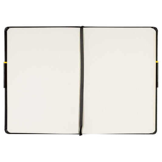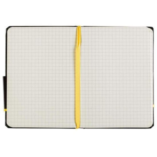 Idena Notizbuch FSC-Mix A6, schwarz, kariert, mit gelbem Gummiband + Lesezeichnenband