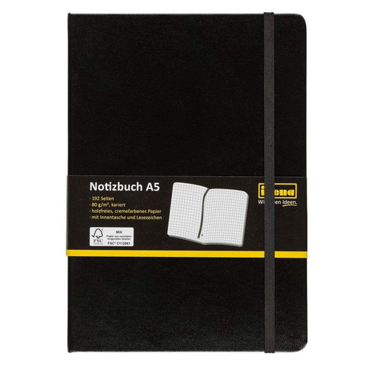 Idena Notizbuch, DIN A5, 192 Seiten, 80 g, kariert, Hardcover, schwarz