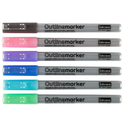 Idena 10455 Outlinemarker, 6 Farben im Set, mit Doppellinien-Effekt