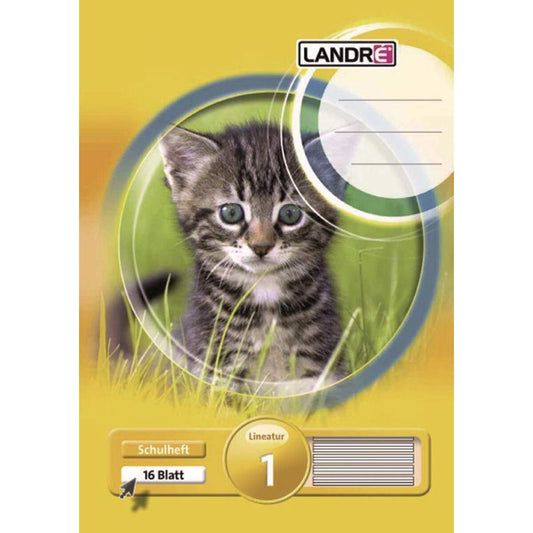 Landré Schulheft Tiermotiv A5, liniert, Liniatur 1, 16 Blatt, sortiert
