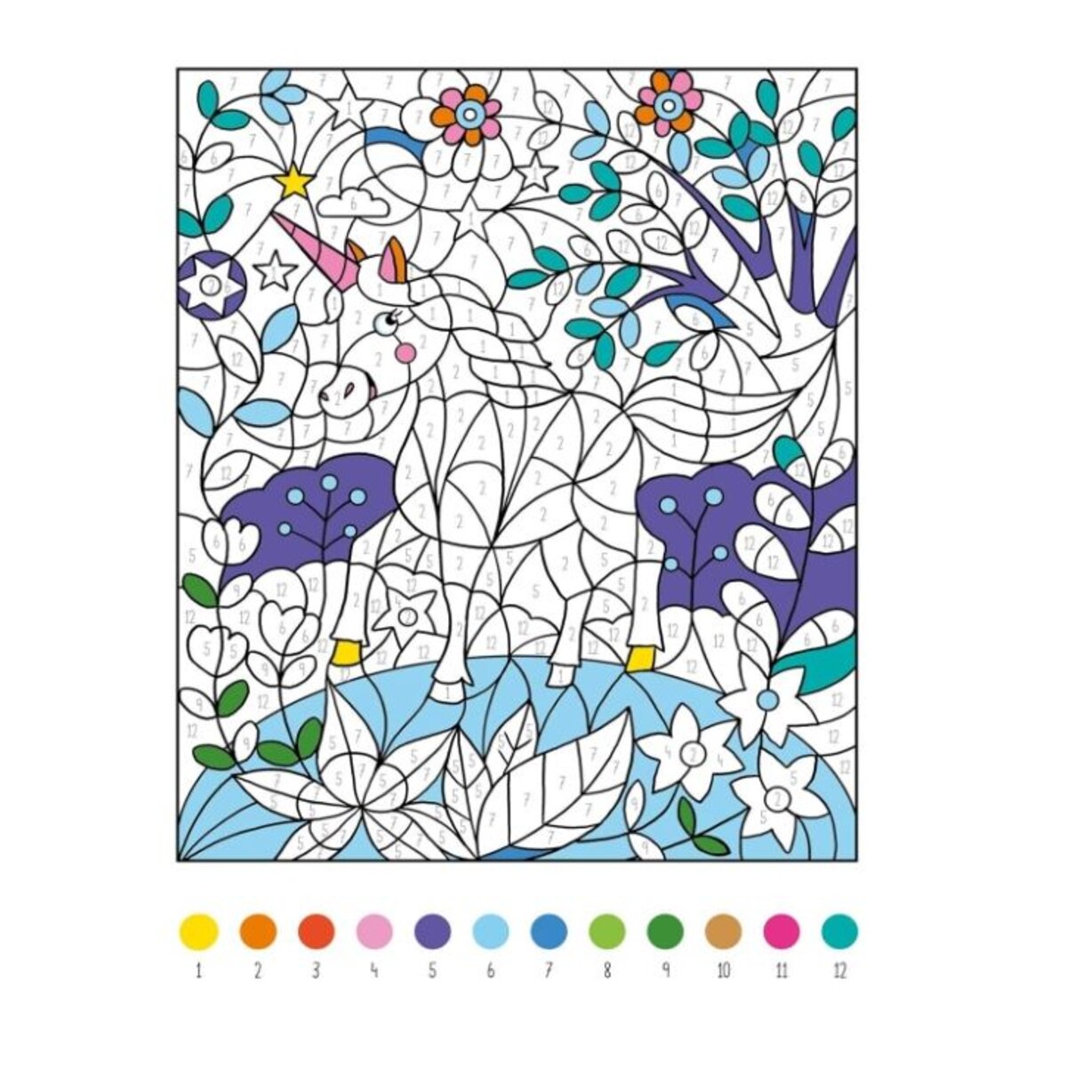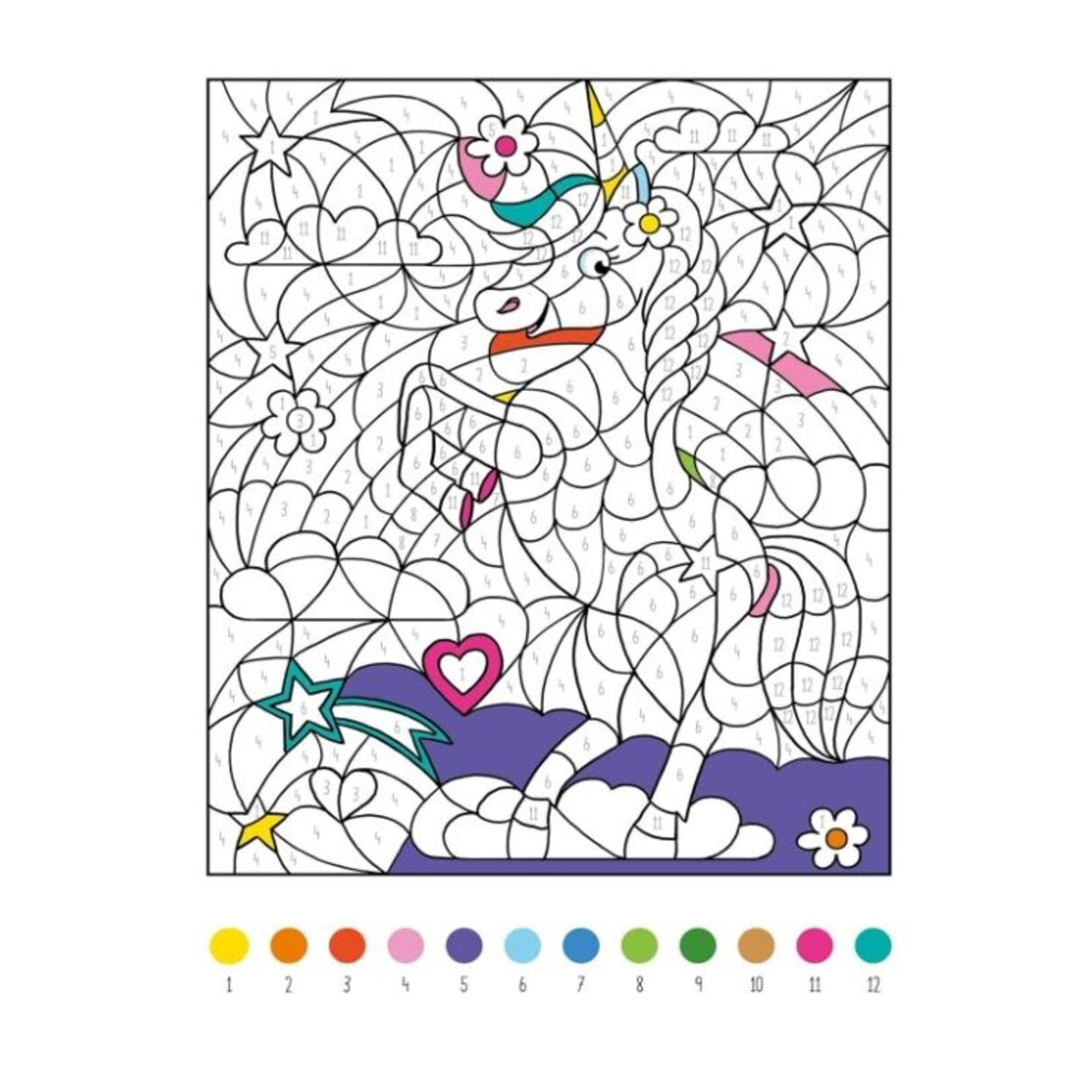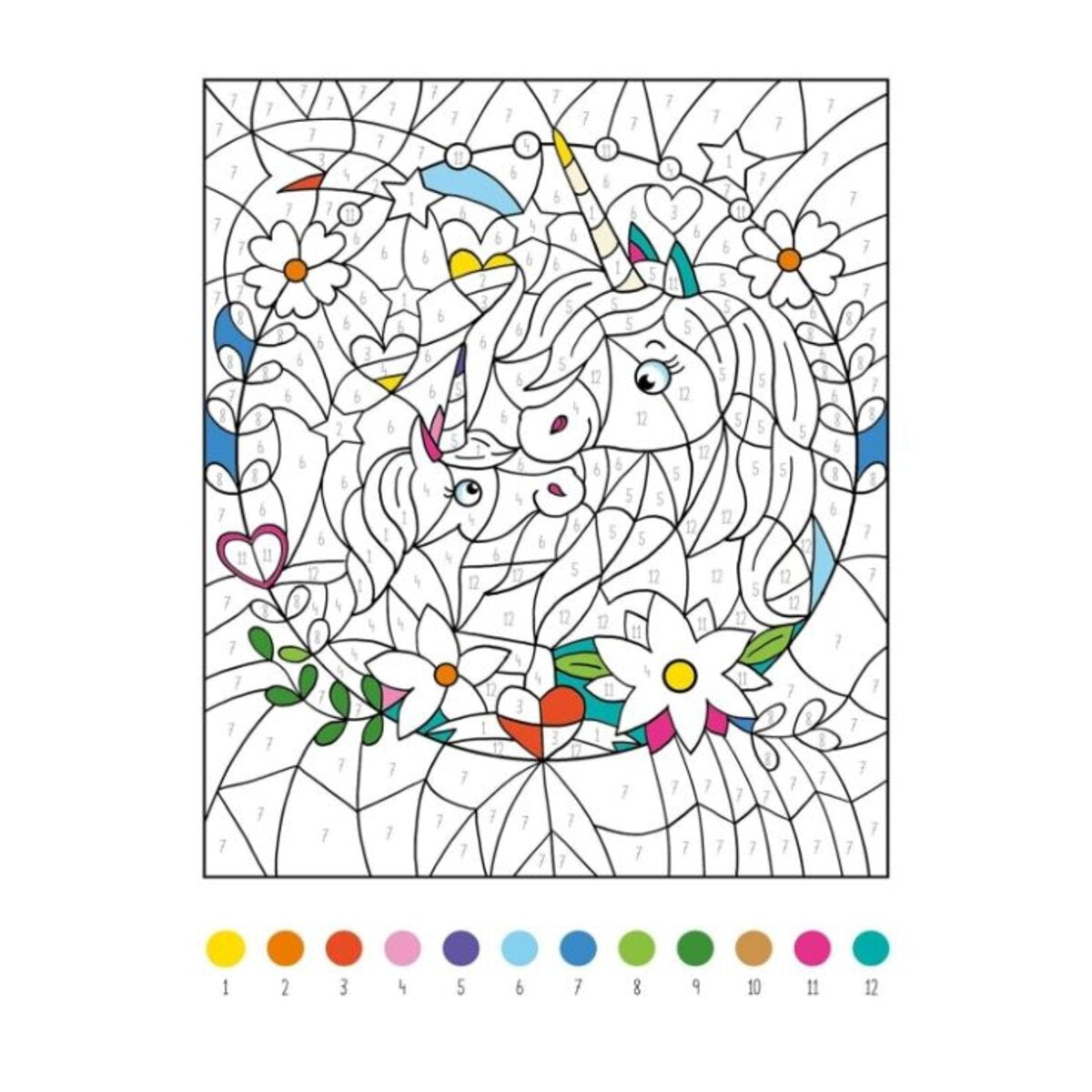 - Mit Farbpalette auf jeder Seite: Die Farbcodierung bleibt auf jeder Seite gleich und die Zahlen im Motiv verschwinden beim Übermalen