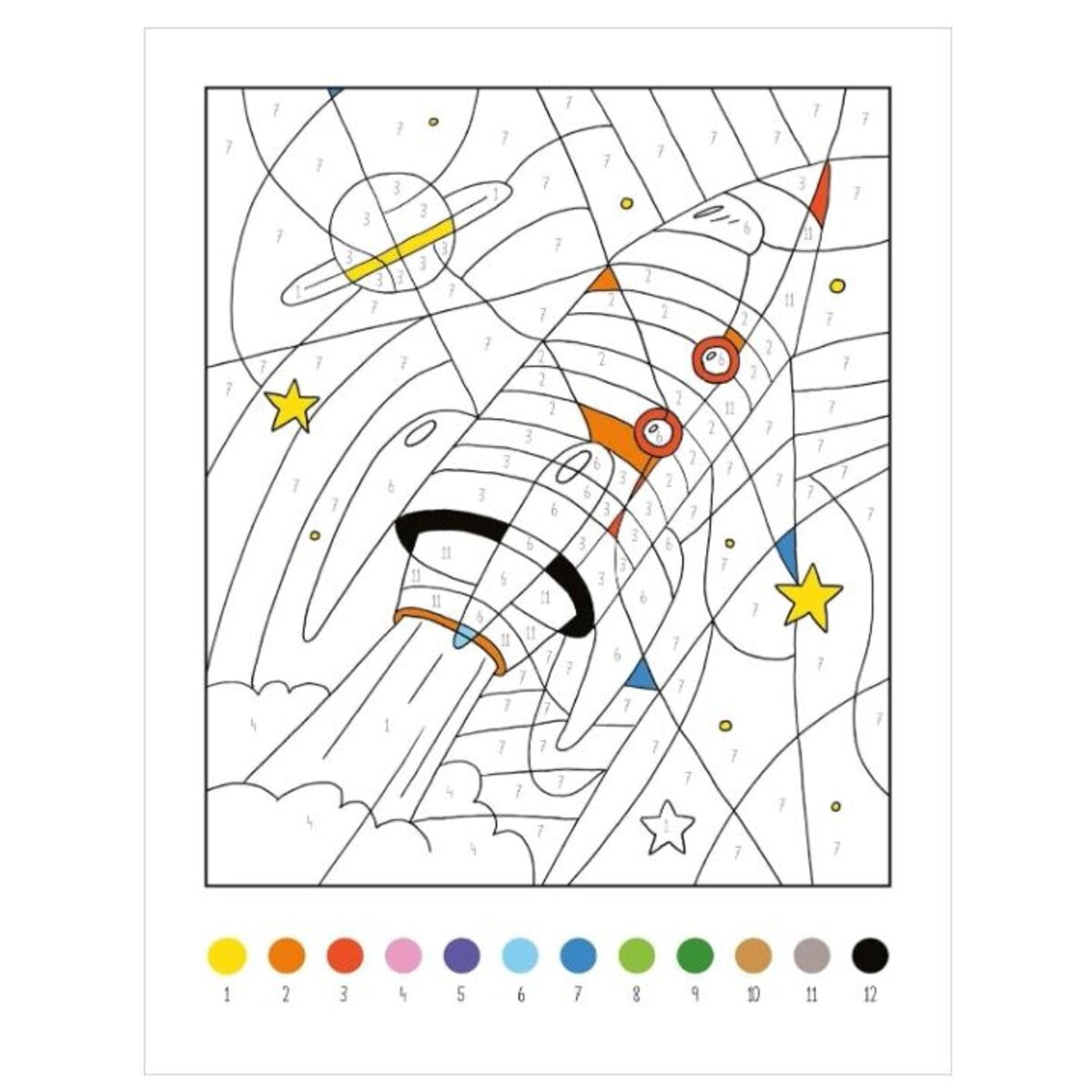 - Mit Farbpalette auf jeder Seite: Die Farbcodierung bleibt auf jeder Seite gleich und die Zahlen im Motiv verschwinden beim Übermalen
