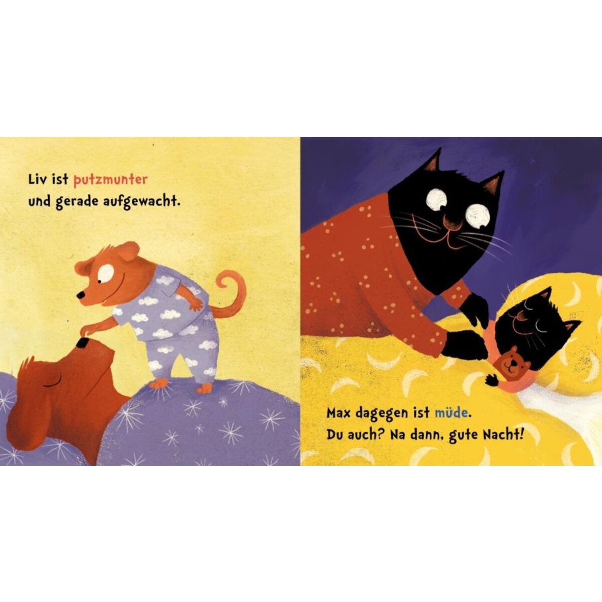 Die Schlange ist lang, der Hamster ganz kurz. Das Kamel mag´s gern heiß, der Eisbär lieber kalt. Das Katzenkind ist müde, der kleine Hund putzmunter. Und du?