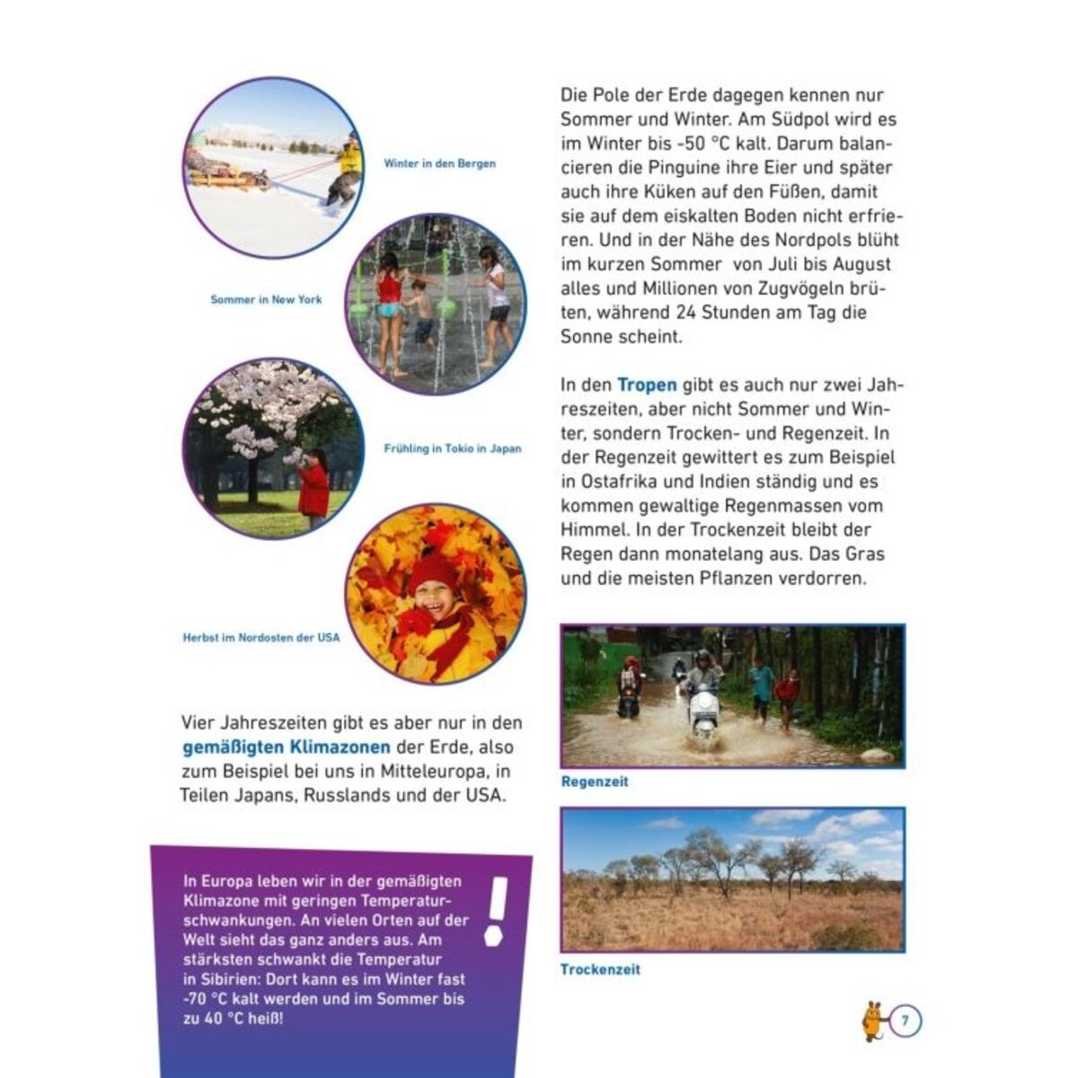 In diesem Buch erfahren Kinder, wie das Wetter mit all seinen Facetten entsteht. Zusammen mit der Maus werden auch die Gründe und Folgen der Klimaerwärmung betrachtet. Warum wird es immer wärmer und was bedeutet das für uns Erdbewohner*innen? Mit zahlreichen Fotos, schlauen Illustrationen und spannenden Experimente lädt die Maus zum Entdecken, Erforschen und Mitmachen ein.