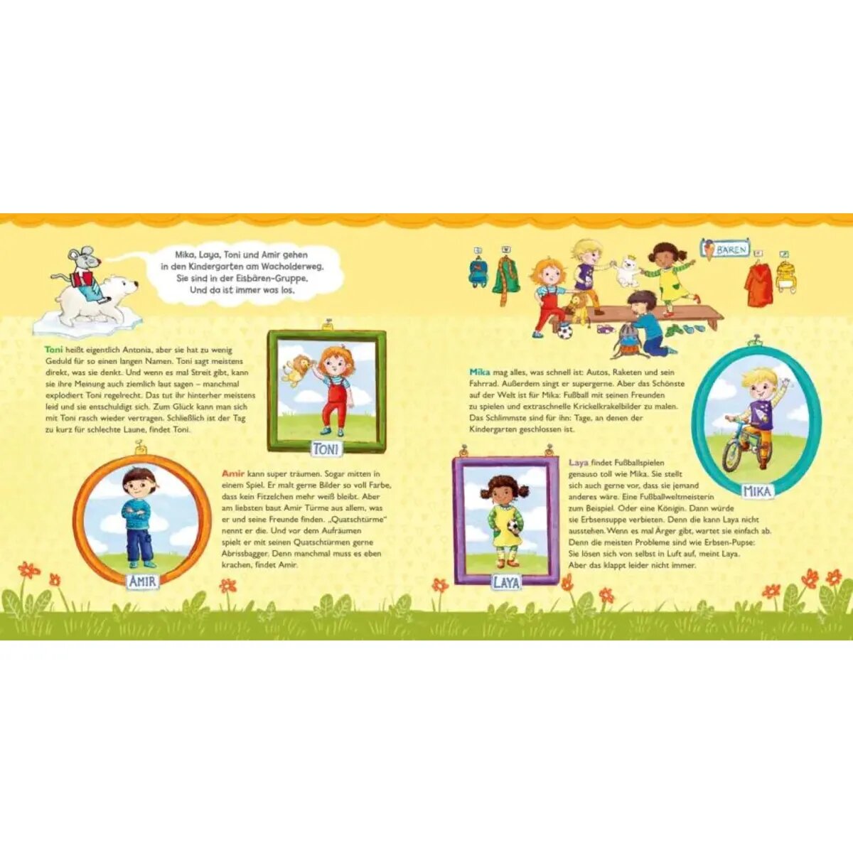 Laya, Mika, Toni und Amir gehen zusammen in den Kindergarten. Was die vier dort erleben, welche Konflikte es geben kann und wie man sie löst – davon erzählt diese Geschichte.