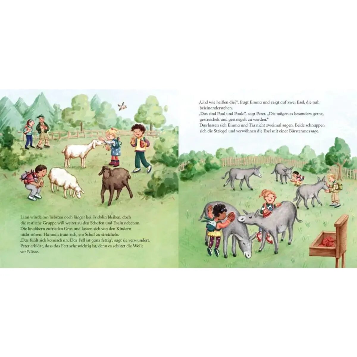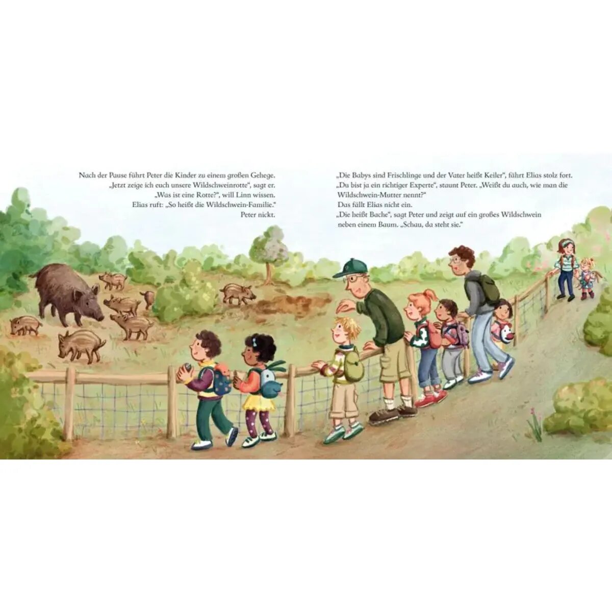 Emma, Elias, Tia und Juri – das sind die KiTa-Kinder. Heute machen sie einen Ausflug in den Wildpark. Sie füttern Ziegen, Schafe und Esel, sehen Rehe, Hirsche und Wildschweine – und finden sogar einen kleinen Schatz! Eine fröhliche Geschichte über den Alltag im Kindergarten.