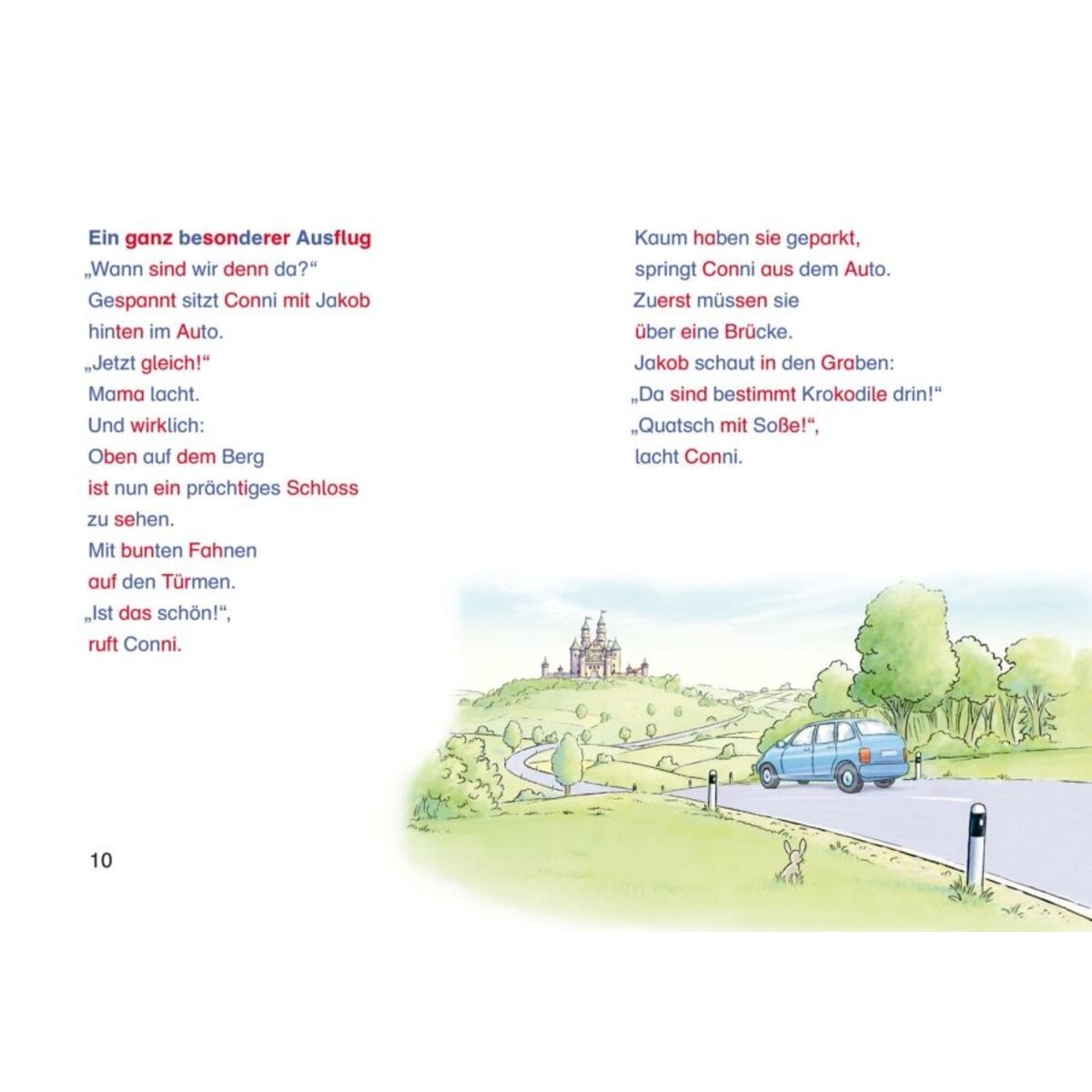 Alle Wörter in diesem Band sind in farbigen Silben markiert. Diese kurzen Buchstabengruppen können Leseanfänger*innen schneller erfassen als das ganze Wort.