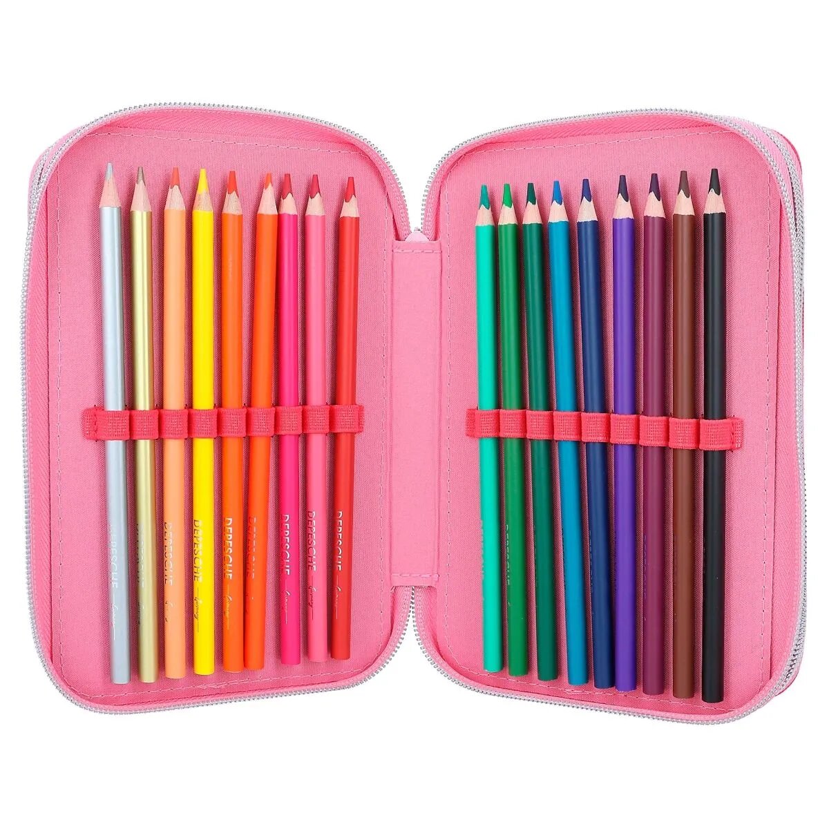One Love by TOPModel: Die Federtasche in tollen Rot- und Rosatönen hat eine Hingucker-Front mit viel Glitzer und einem großen Model-Print. Der Rest der Federtasche ist voller niedlicher Herzen. Die drei separaten Fächer sind komplett gefüllt mit je 18 Bunt- und Filzstiften, 2 Bleistiften, Radierer, Anspitzer, Lineal, Schere und Klebestift. Superflauschiges Plus: der große Herz-Anhänger am Reißverschluss. Material. 100 Prozent PES, mit PVC an der Front