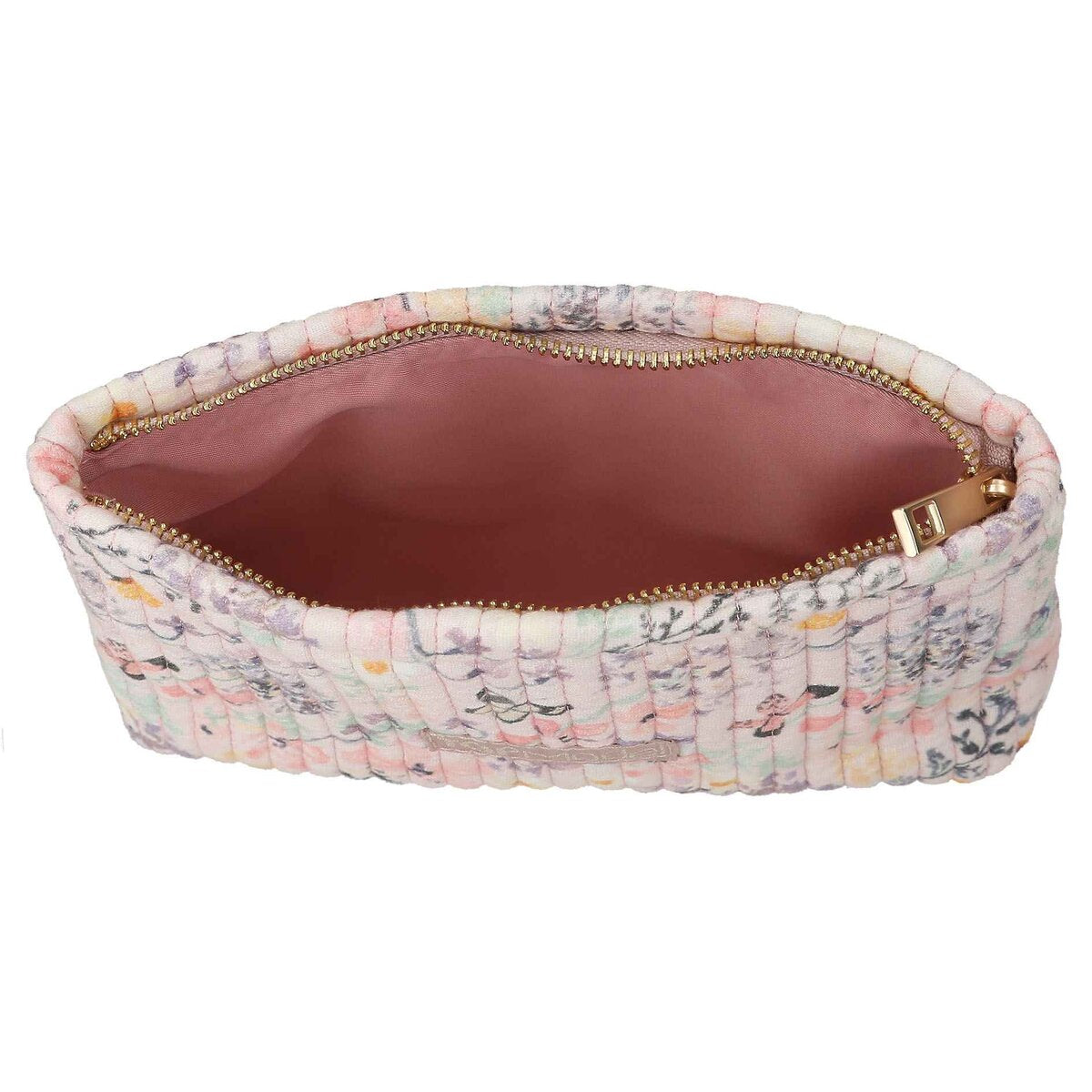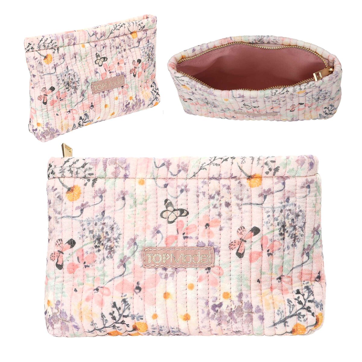 Die kleine TOPModel-Kosmetiktasche hat rundherum ein niedliches Muster aus zarten Blumen und Schmetterlingen auf hellem Grund. Mit hübscher Steppung, dezentem Logo und Reißverschluss. Material: 100 Prozent Baumwolle
