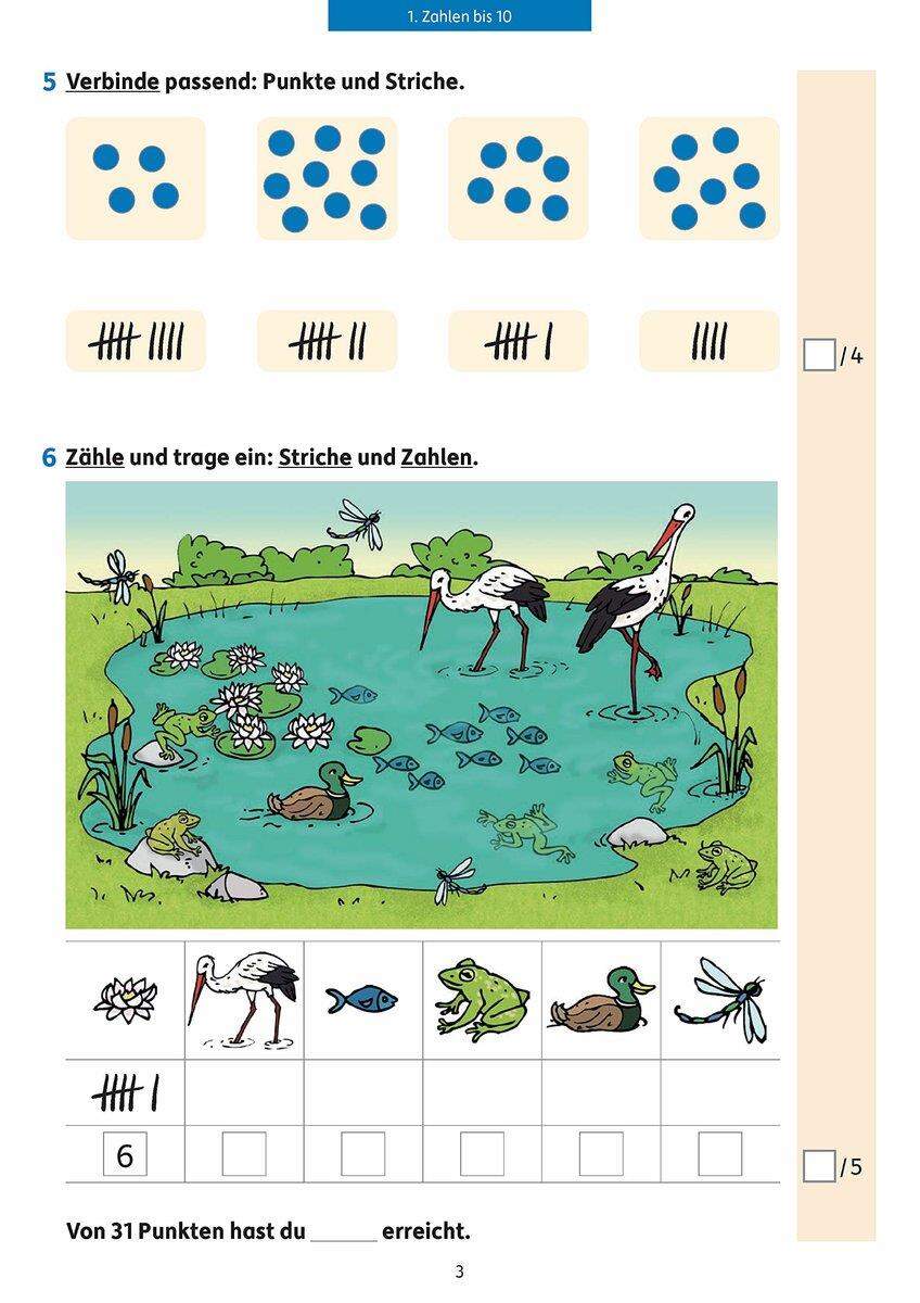 So gibt es Tests zu folgenden Themen: Zahlenraum bis 10 bzw. bis 20, Addition und Subtraktion auch mit anschaulichen Illustrationen, Rechnen mit Geld, das Lesen der Uhr, einfaches Rechnen mit Zeitpunkten und Zeitspannen, geometrische Grundbegriffe, Zahlenrätsel und Sachaufgaben.