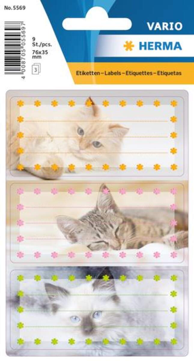 HERMA Schuletiketten Katzen, beglimmert, 76 x 35mm, 2 Bögen