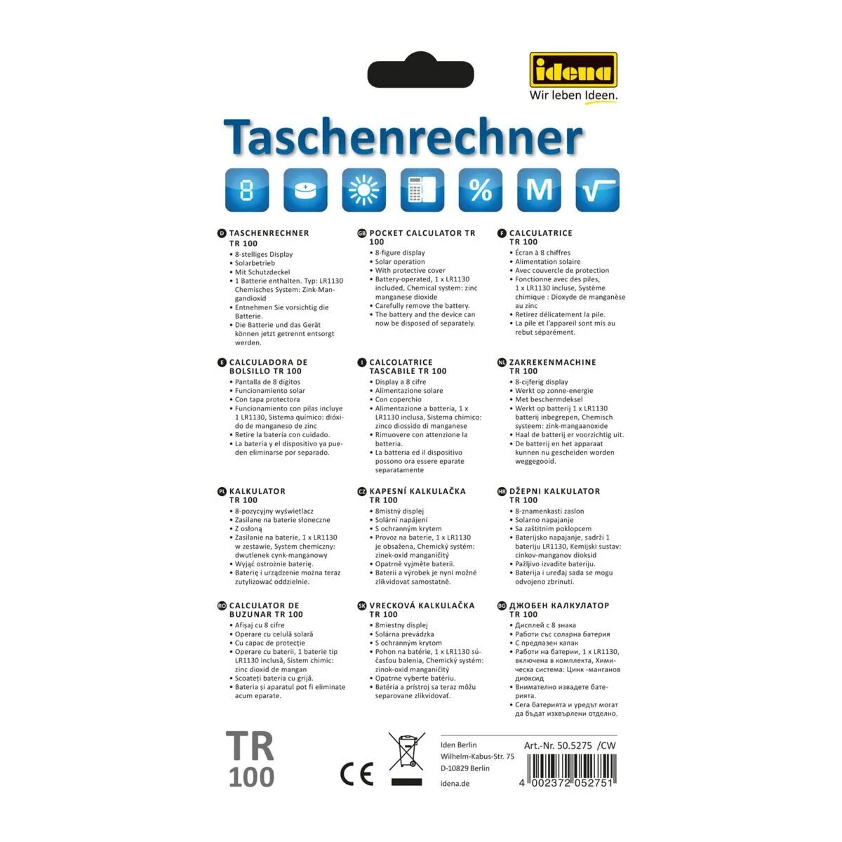 Idena 505275 Taschenrechner TR 100, 8stellig
