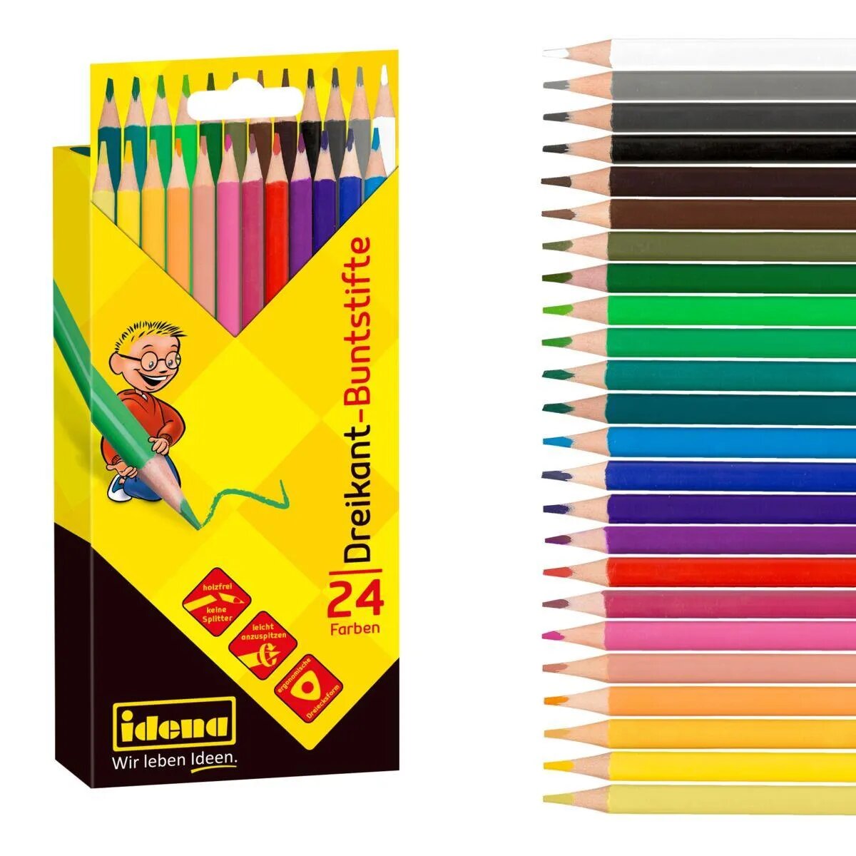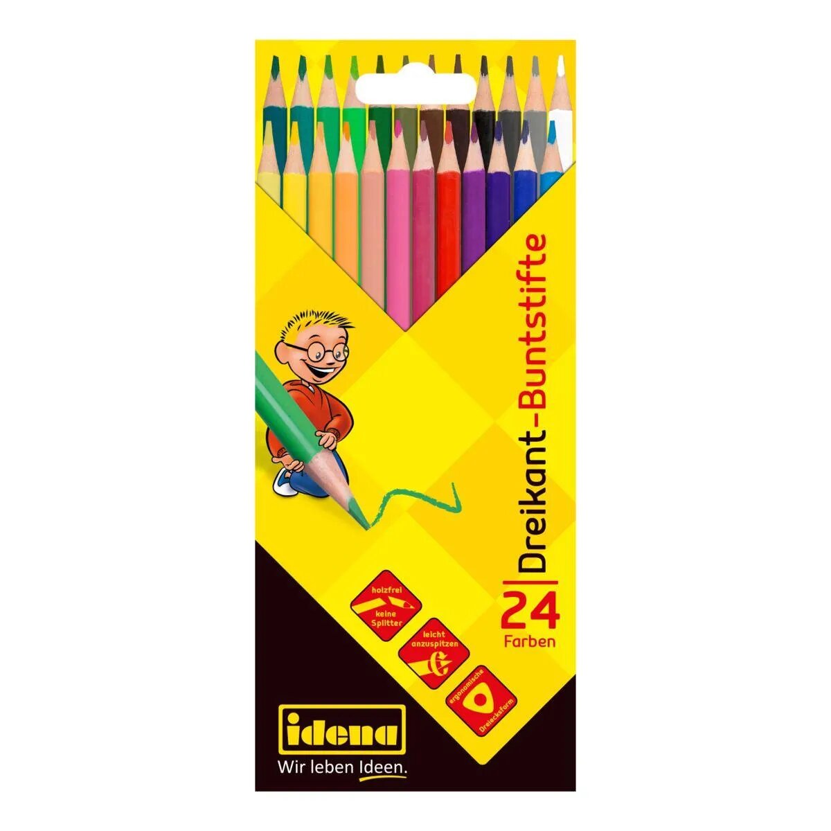 Idena Buntstifte in ergonomischer Dreiecksform, 24 holzfreie Farbstifte im Kartonetui zum Malen