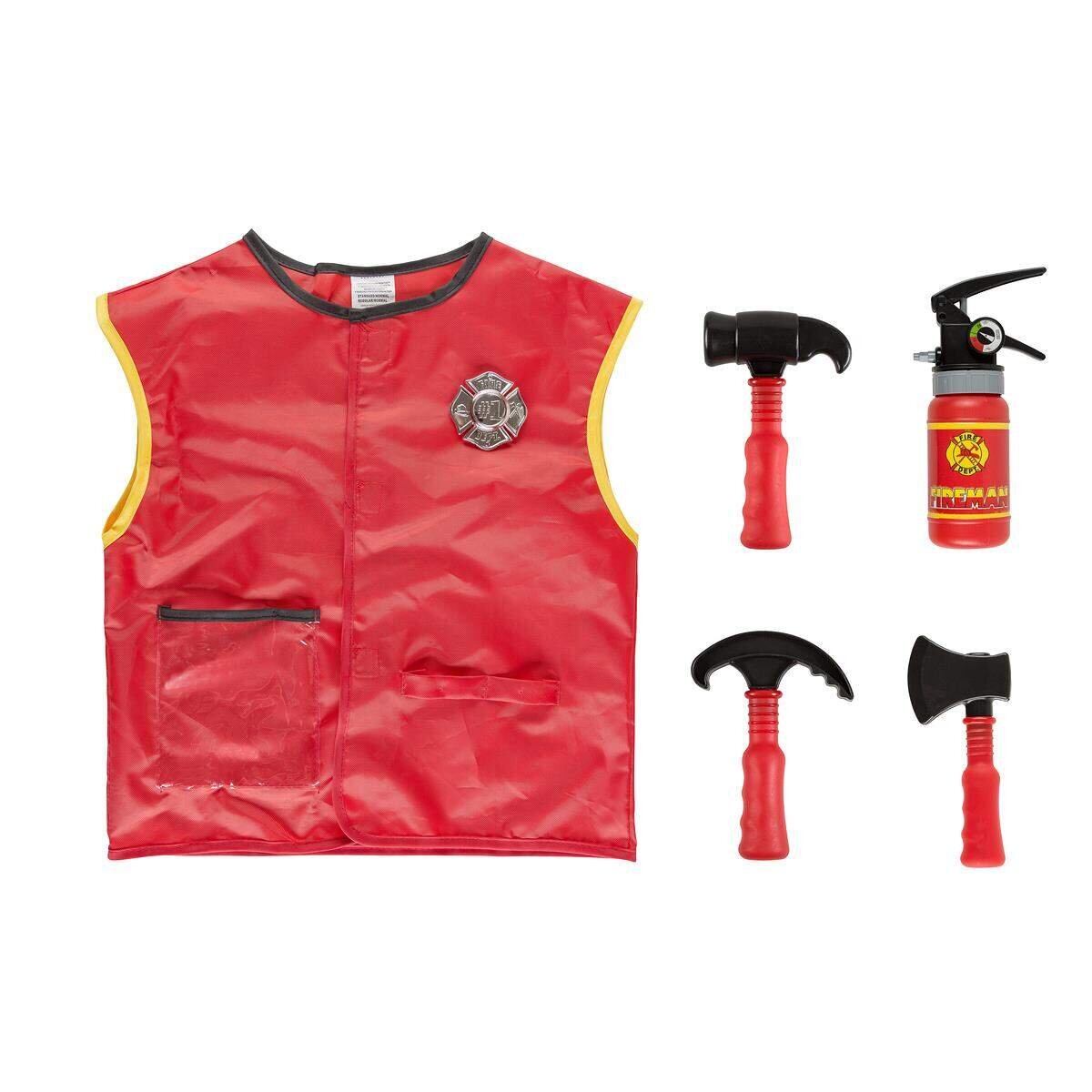 Idena Feuerwehrmannweste mit Abzeichen, Werkzeugen, Feuerlöscher, 3-6 Jahre