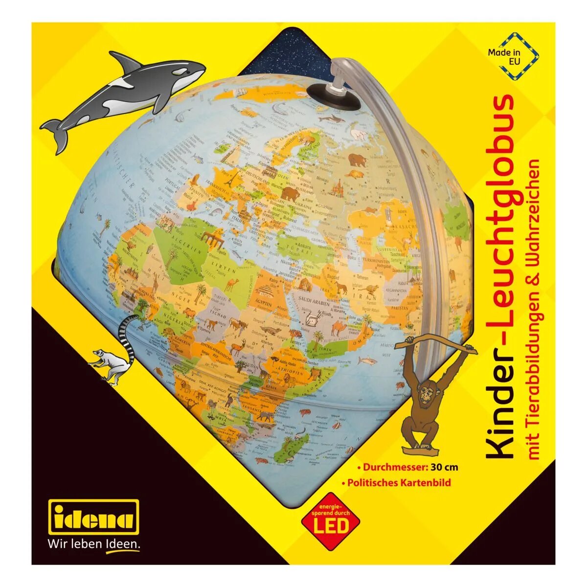Idena Globus, Leuchtglobus für Kinder , Ø 30 cm, mit Tierabbildungen