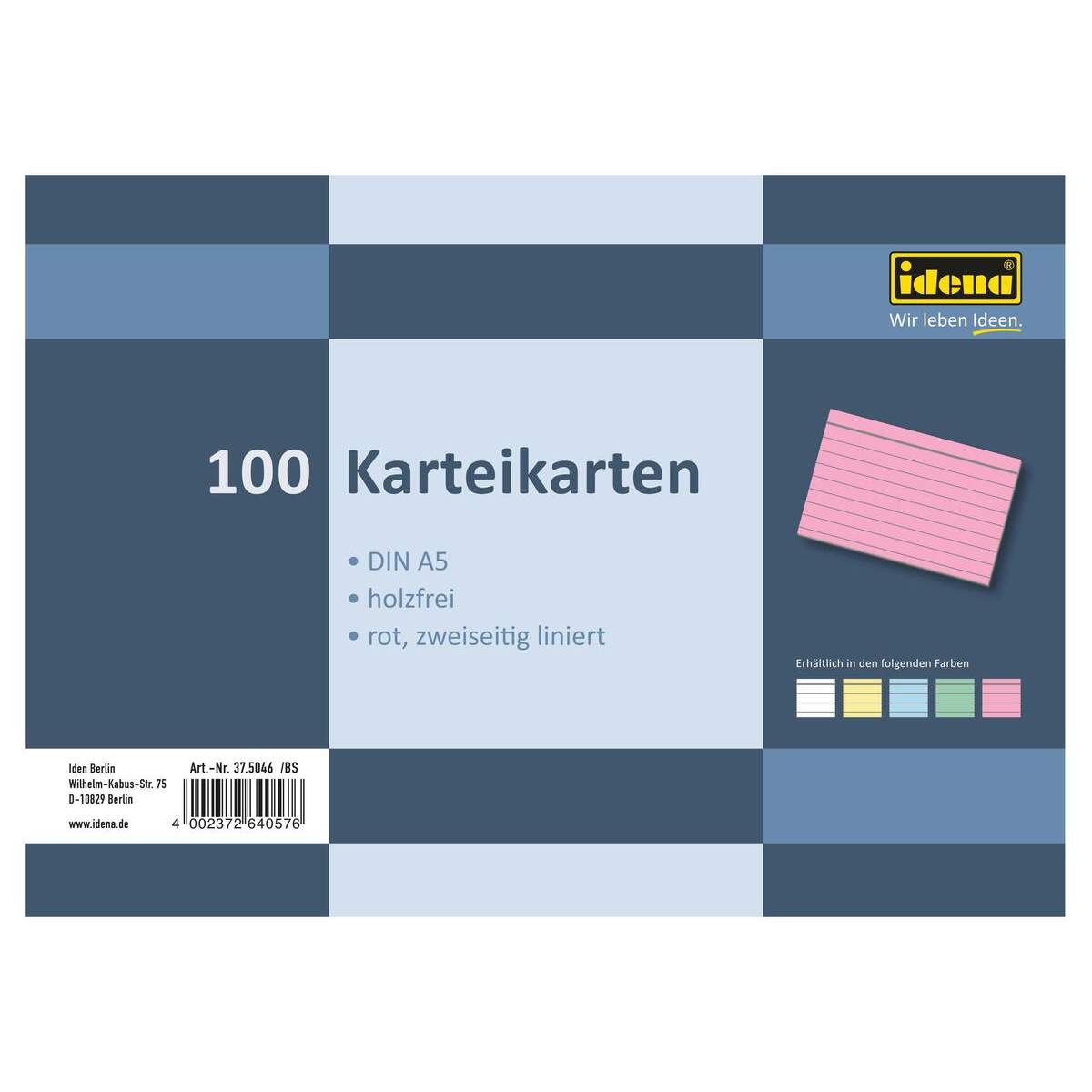 Idena Karteikarten A5 liniert rot, 100 Stück