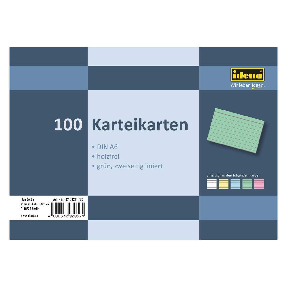 Idena Karteikarten A6 liniert Grün, 100 Stück