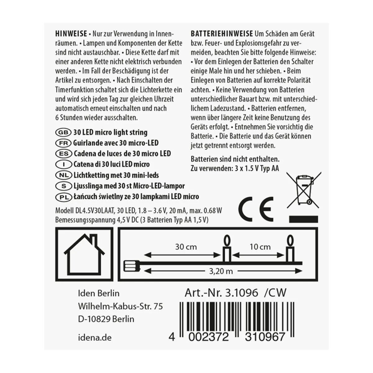 Idena LED Micro Lichterkette mit Timer, 30er, bunt