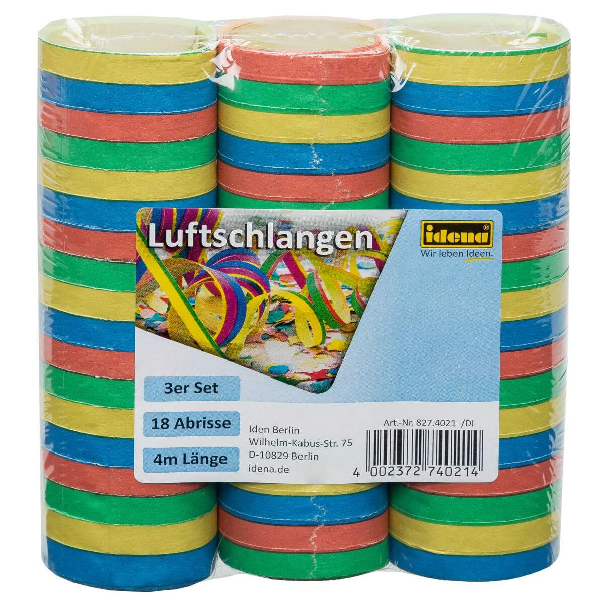 Idena Luftschlangen 3er Set 18 Abrisse, 4m Länge
