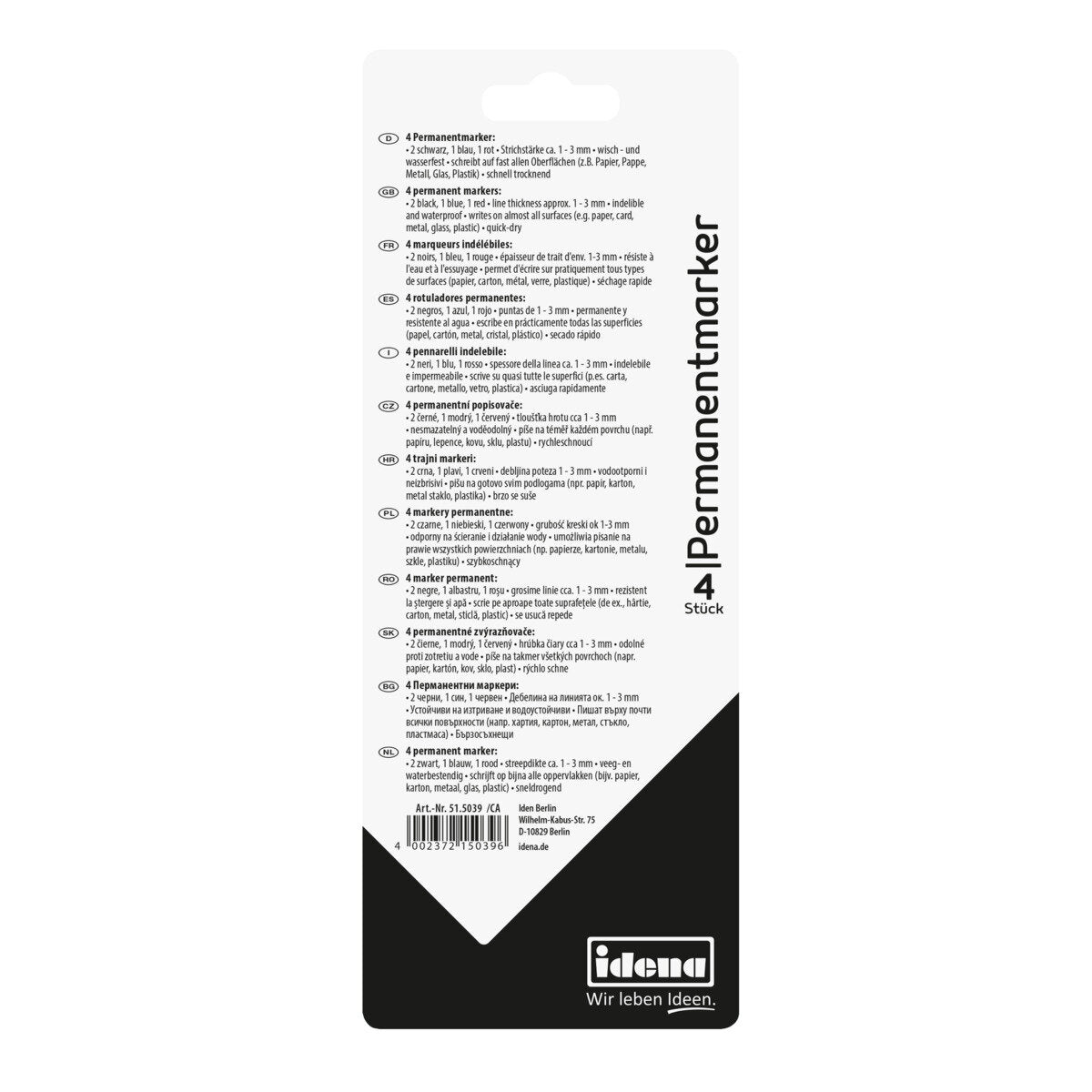 Idena Permanentmarker 4er 2x Schwarz,1x Blau und Rot