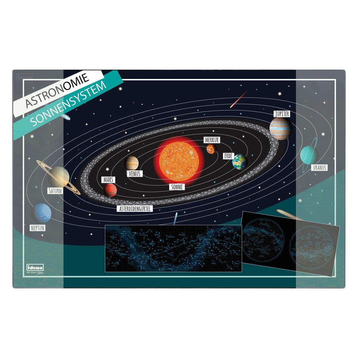 Idena Schreibtischunterlage mit zwei Einstecktaschen, Sonnensystem, FSC Mix, ca. 58,5 x 38,5 cm