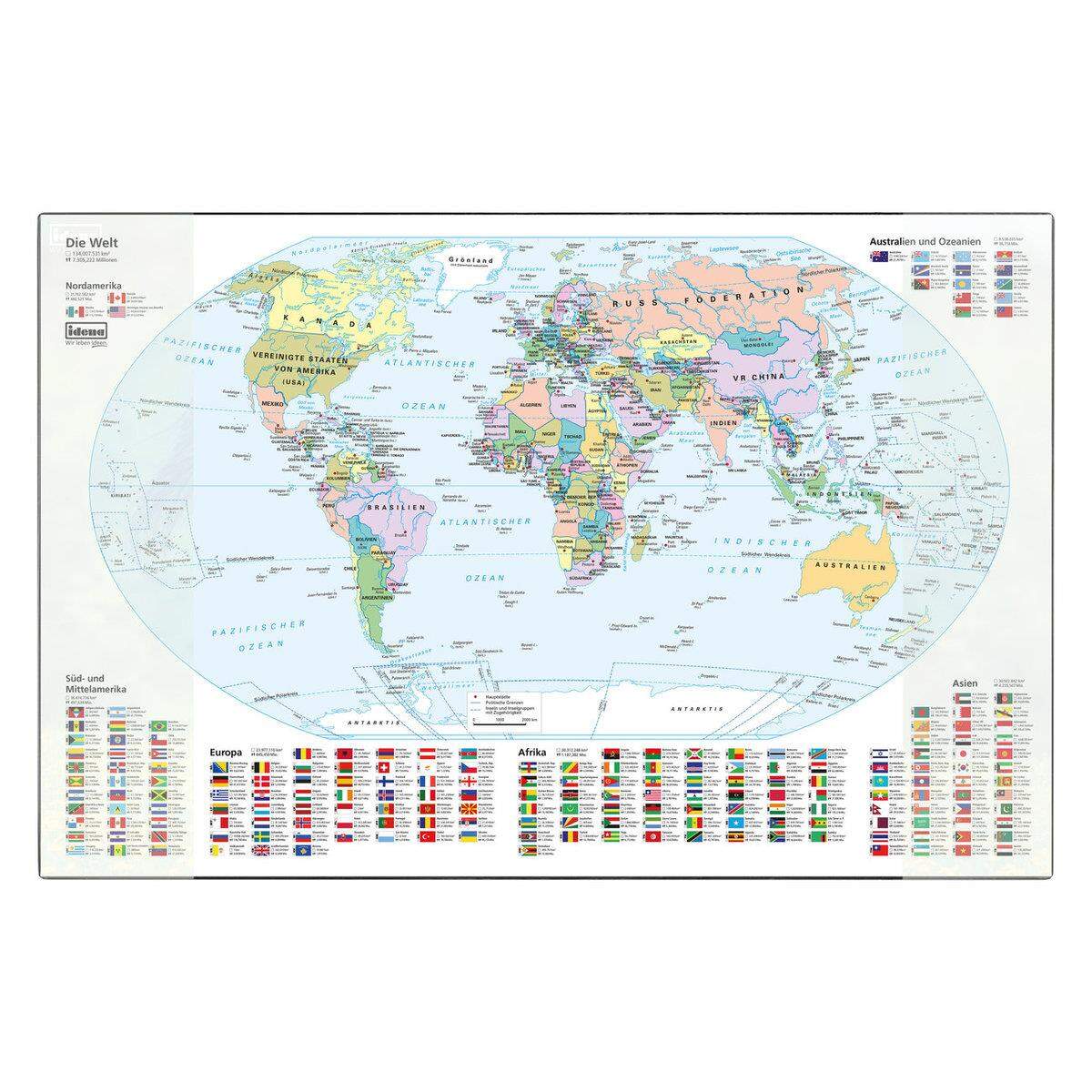 Idena Schreibtischunterlage mit zwei Einstecktaschen, Weltkarte, FSC Mix, ca. 58,5 x 38,5 cm