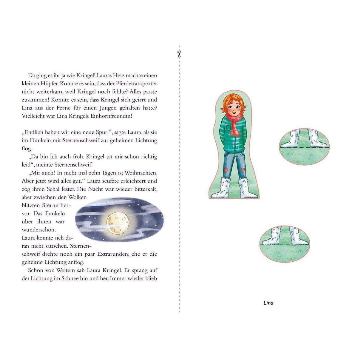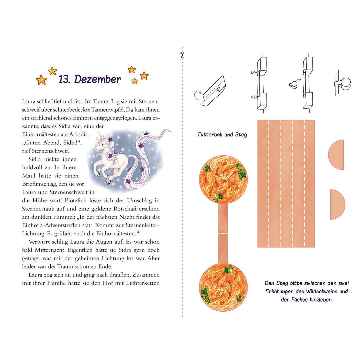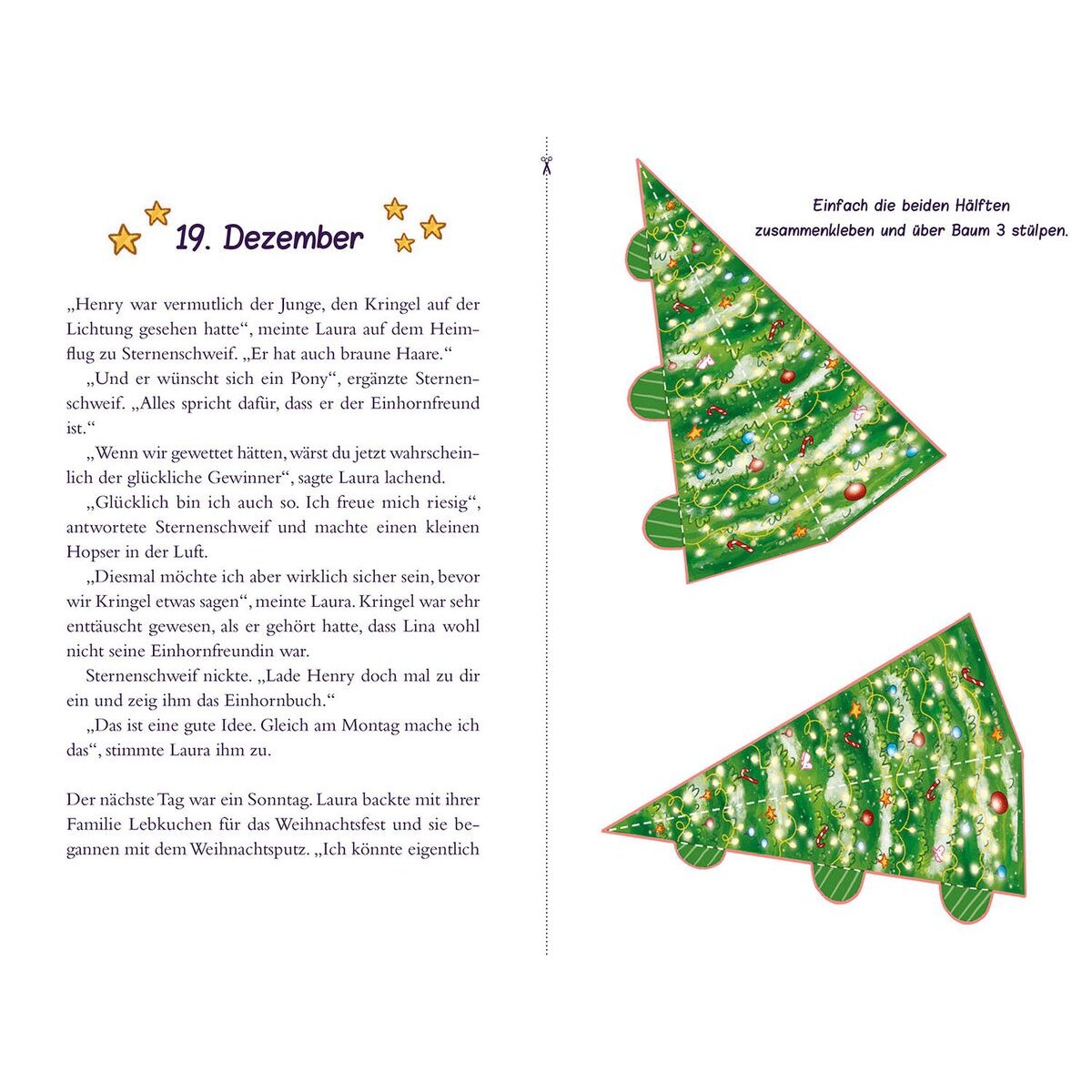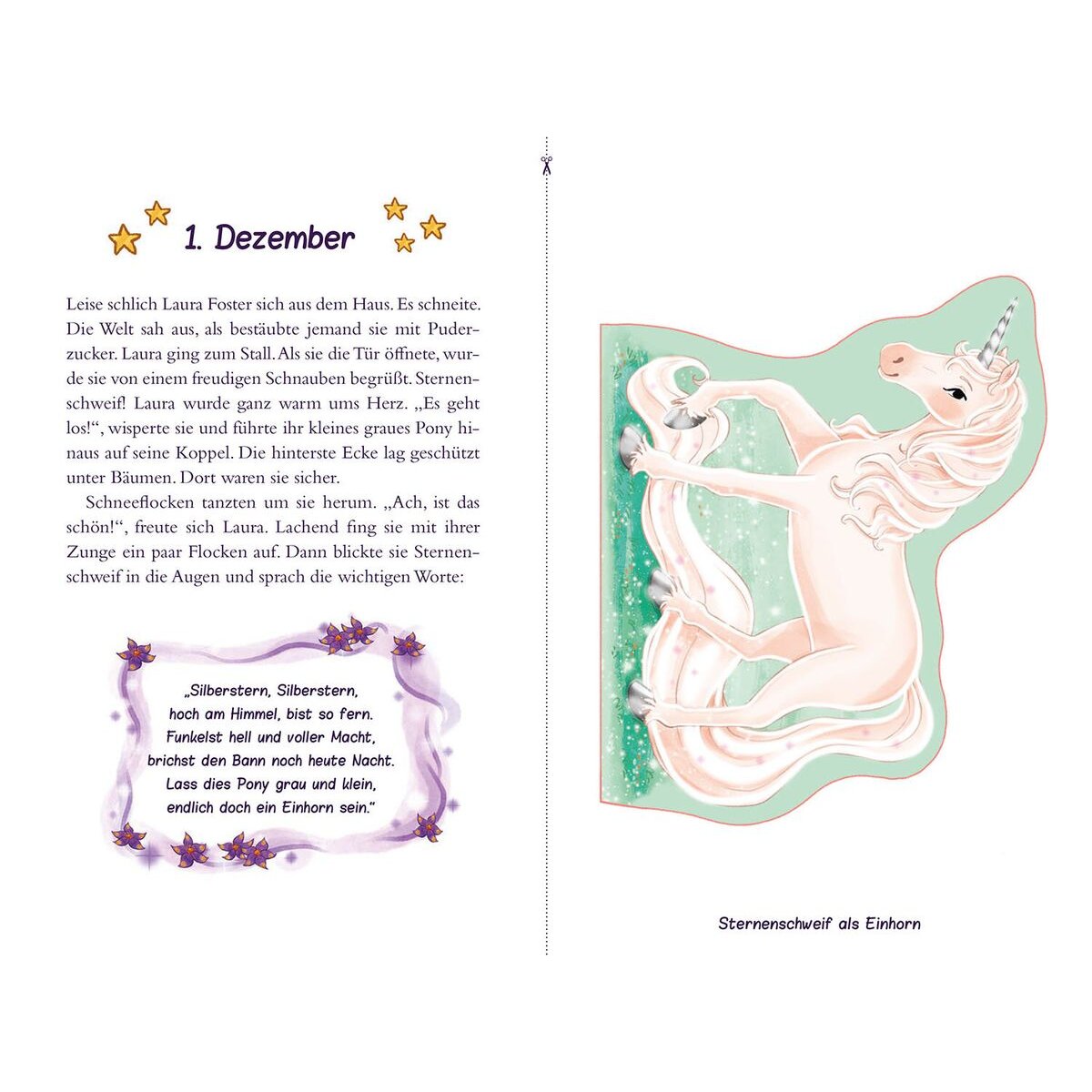 Ein weihnachtliches Sternenschweif-Abenteuer in 24 Kapiteln zum Vorlesen. Zusätzlich zu jedem Kapitel gibt es zwei Bastelelemente zum Ausschneiden und Falten: so entsteht in 24 Tagen ein zauberhaftes Sternenschweif-Diorama, in dem die Kinder magische Geschichten spielen können.