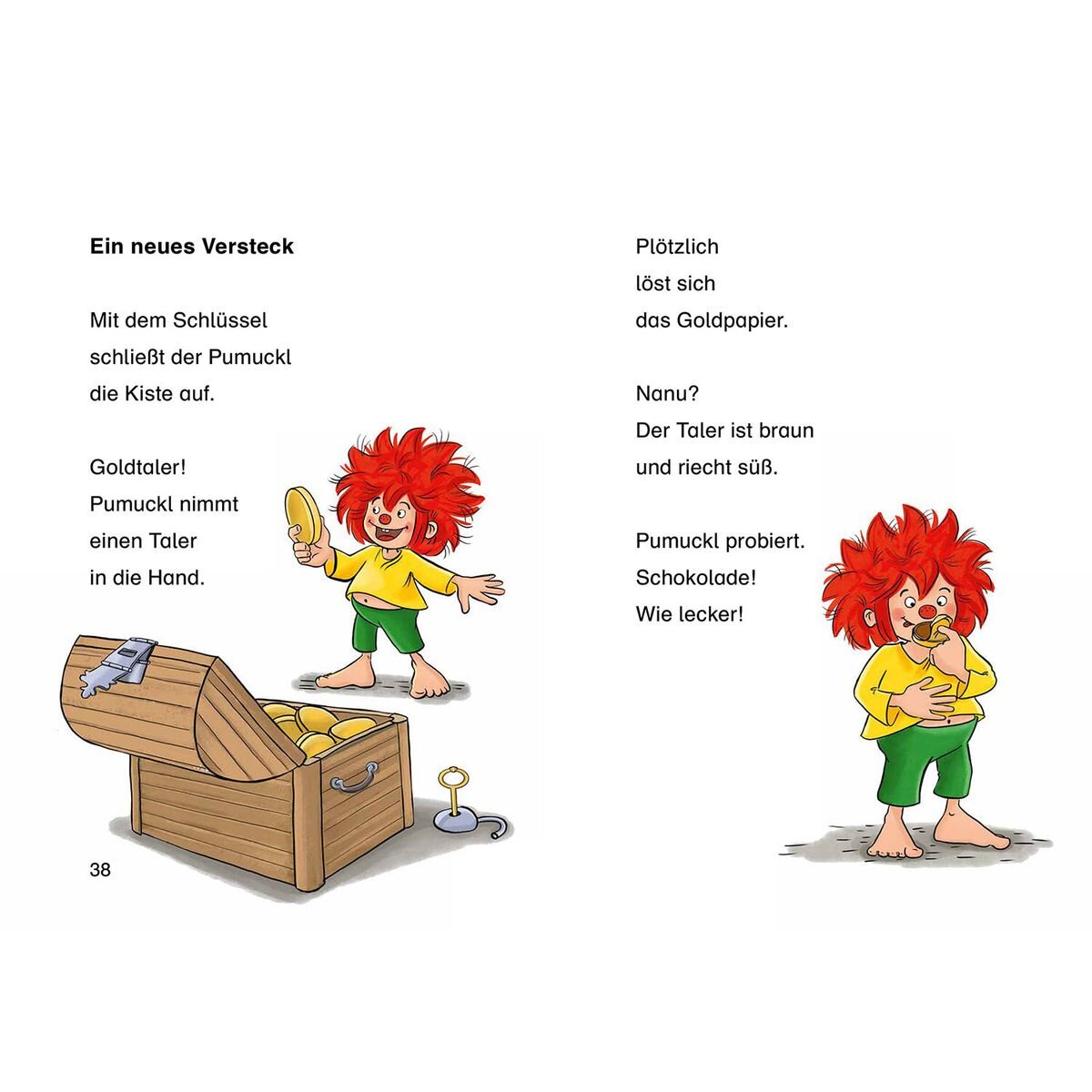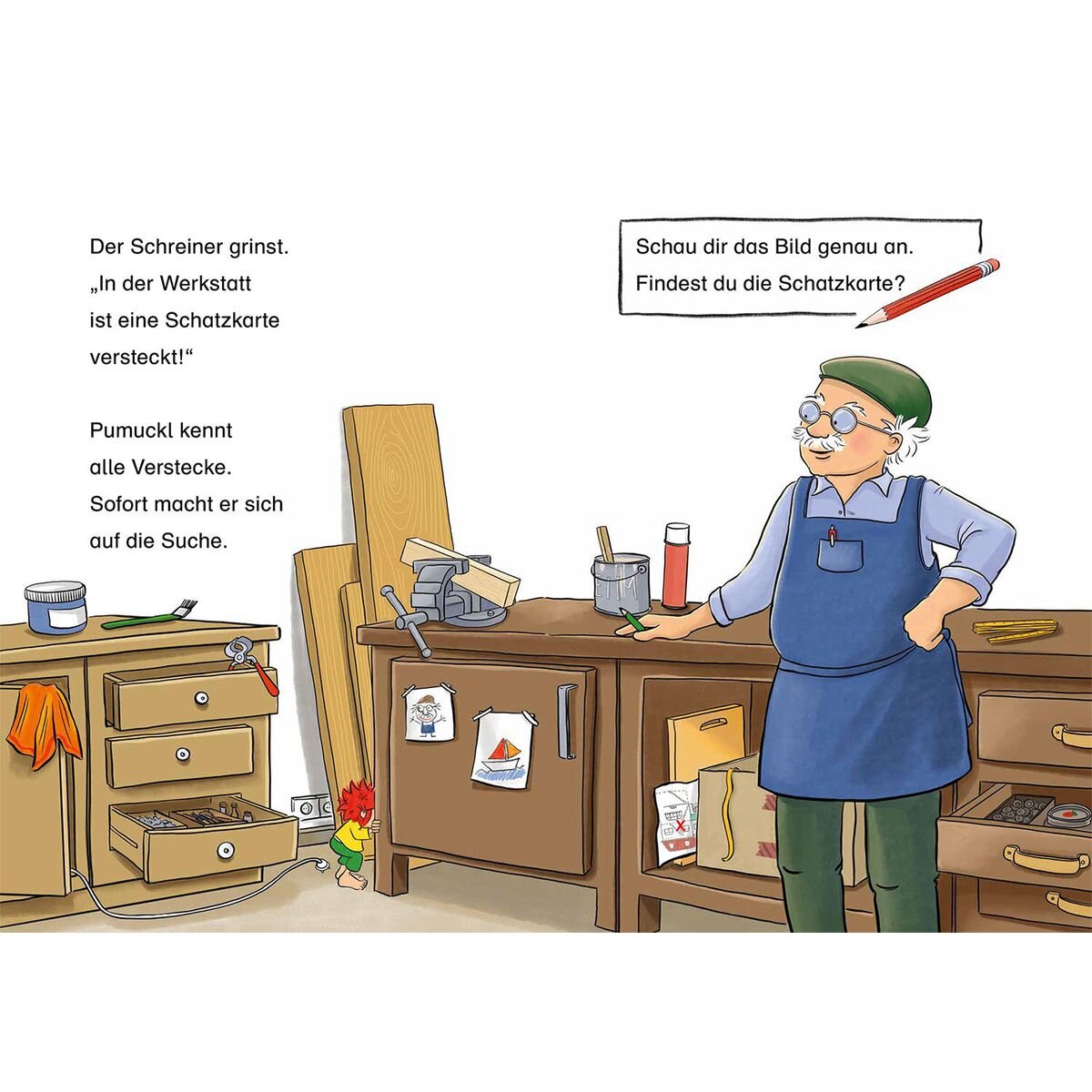 Meister Eder hat sich für Pumuckl etwas Tolles ausgedacht – eine Schatzsuche! Dafür hat er extra eine Schatzkarte entworfen und versteckt. Der kleine Kobold macht sich begeistert auf die Suche. Doch er muss viele Hindernisse überwinden und Abenteuer bestehen, bevor er sich schließlich über seinen Schatz freuen kann: leckere Schokogoldtaler.