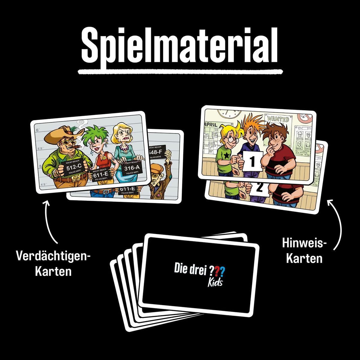 Bahn frei für alle Nachwuchs-Detektive! Dieses spannende Kartenspiel erfordert Köpfchen und Teamwork. Gleich mit sieben Verdächtigen haben es Justus, Peter und Bob in ihrem neuesten Fall zu tun. Scharfsinniges Kombinieren ist gefragt, ehe die Spielerinnen und Spieler zusammen mit den drei ??? Kids die Täter entlarven und die Handschellen klicken. Das kooperative Kinderspiel für zwei bis sechs Spürnasen dauert pro Runde etwa eine Viertelstunde – empfohlen ab acht Jahren. Ein tolles Geschenk für Kinder, die selbst ermitteln wollen!