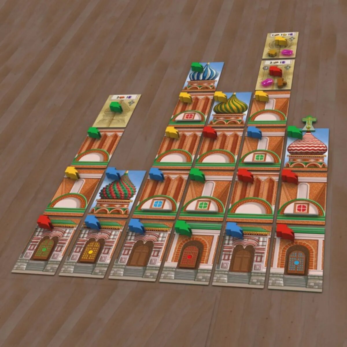 Beschafft euch auf dem Markt das beste Baumaterial, nutzt geschickt eure Verbindungen zu den Gilden und zum Klerus und vergrößert so euer Ansehen. Wer wird bei der Fertigstellung der roten Kathedrale den meisten Ruhm des Zaren erlangen?