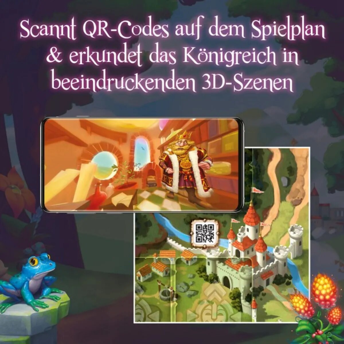 Wo sind bloß die vier Mondsteine? In diesem kooperativen Abenteuerspiel mit App-Anbindung schlüpfen 1-4 Kinder ab 7 Jahren in die Rolle von Zauberlehrlingen auf der Suche nach den verlorenen Mondsteinen. Auf dem Weg zum Ziel warten in sechs Kapiteln viele Rätsel und Aufgaben. Mithilfe der App und dem Brettspiel bewegen sich die Kinder in der magischen Welt, sammeln Gegenstände und erkunden Orte. Die Orte und Charaktere im Spiel werden durch das Scannen von QR-Codes auf dem Spielplan und den Karten interaktiv erlebbar. Gemeinsam geht es in diesem Familienspiel mit dem Tablet oder Smartphone auf virtuelle Spurensuche. Die perfekte Kombination aus Brettspiel und App in einem!