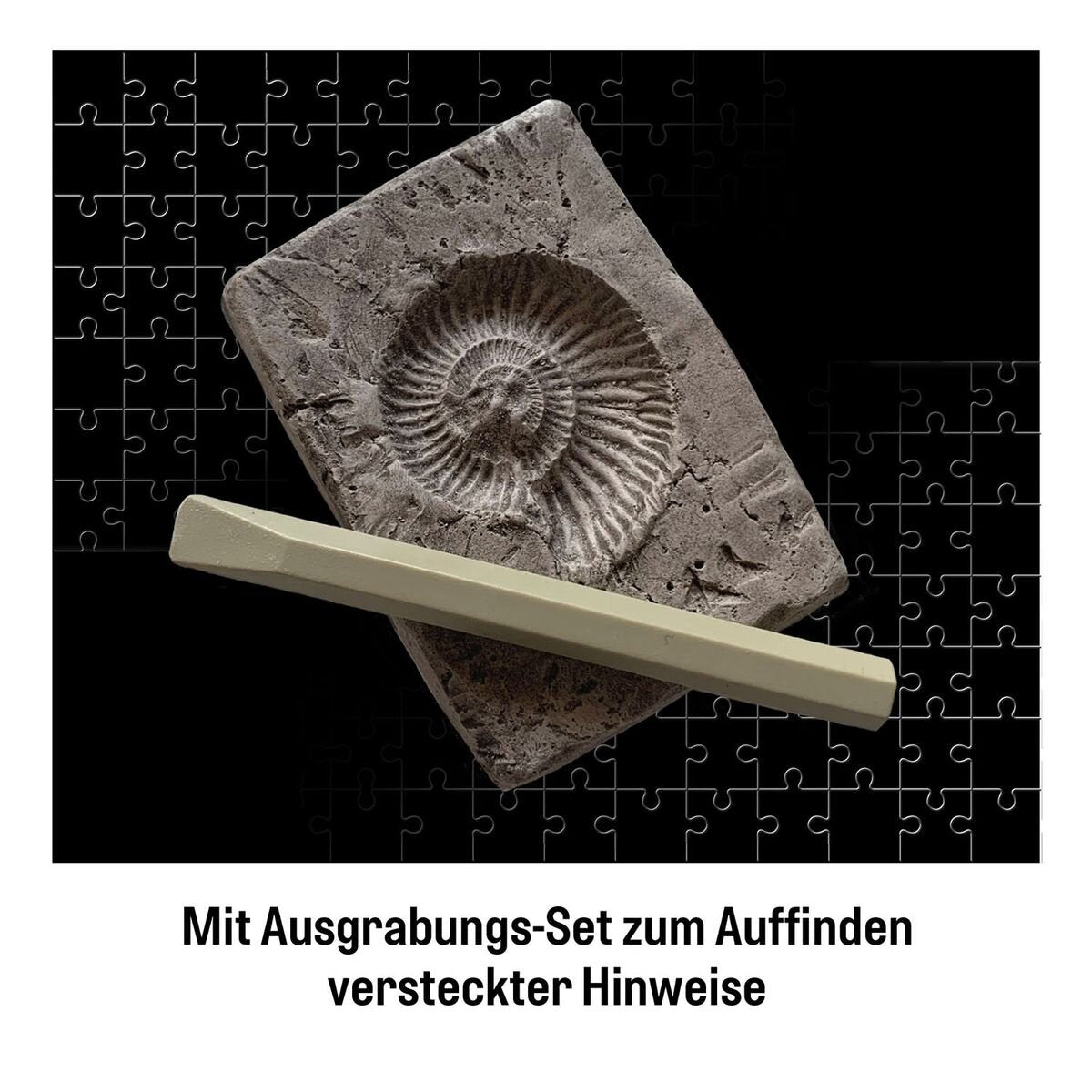 Inhalt: 200 Teile Puzzle (Format: 54 x 38 cm), 1 Ausgrabungsset Fossilien, 1 Meißel, Anleitung mit exklusiver Kurzgeschichte und Lösungsteil