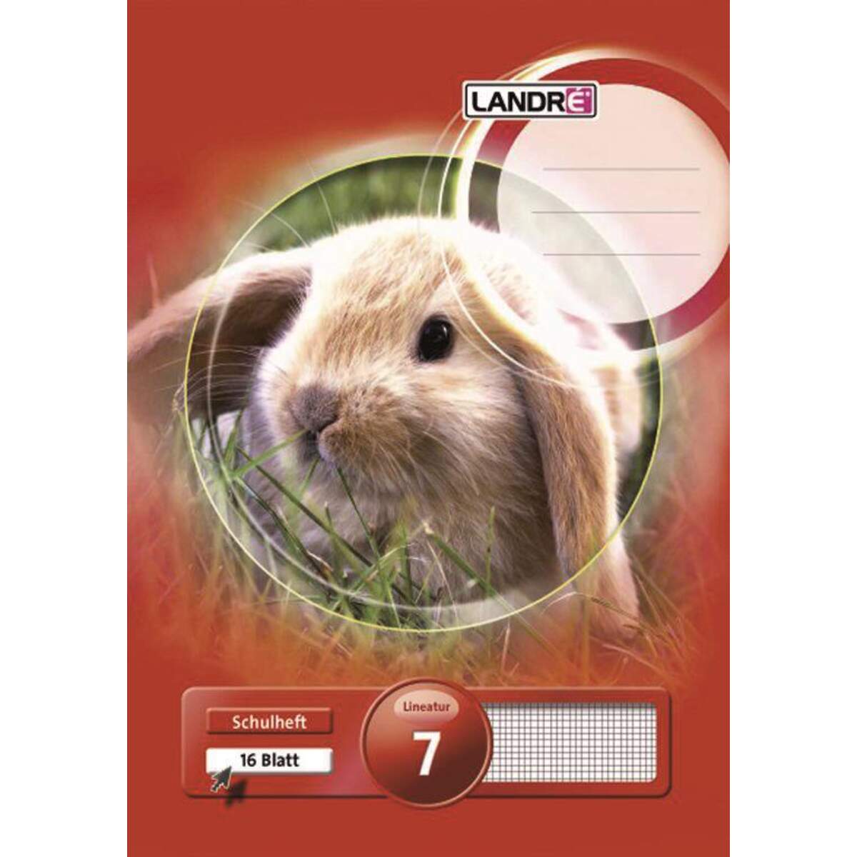 Landré Schulheft A4, kariert, Liniatur 7, 16 Blatt, sortiert