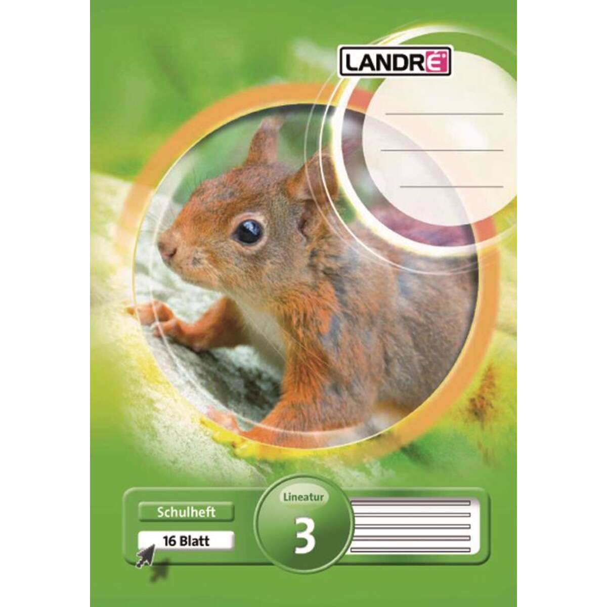 Landré Schulheft A4, liniert, Liniatur 3, 16 Blatt, sortiert