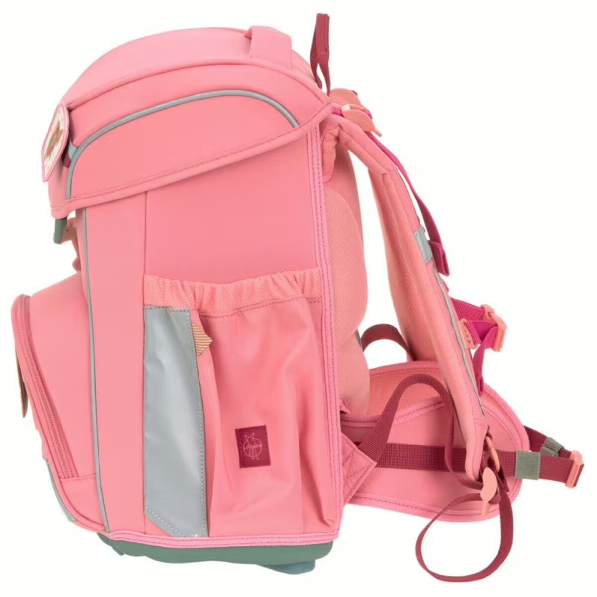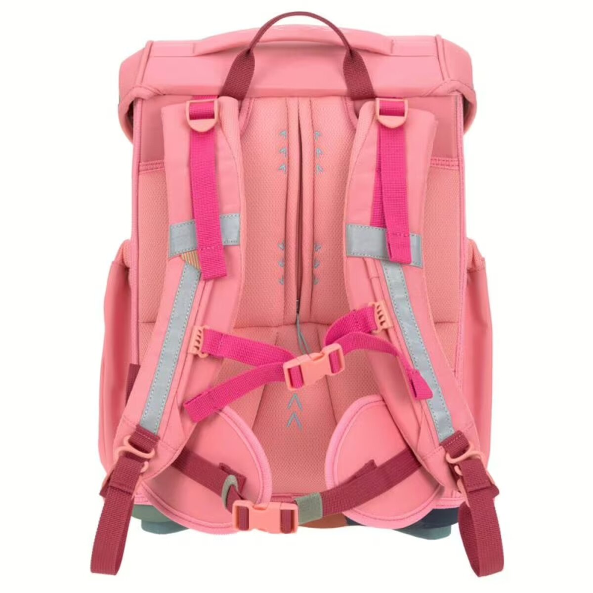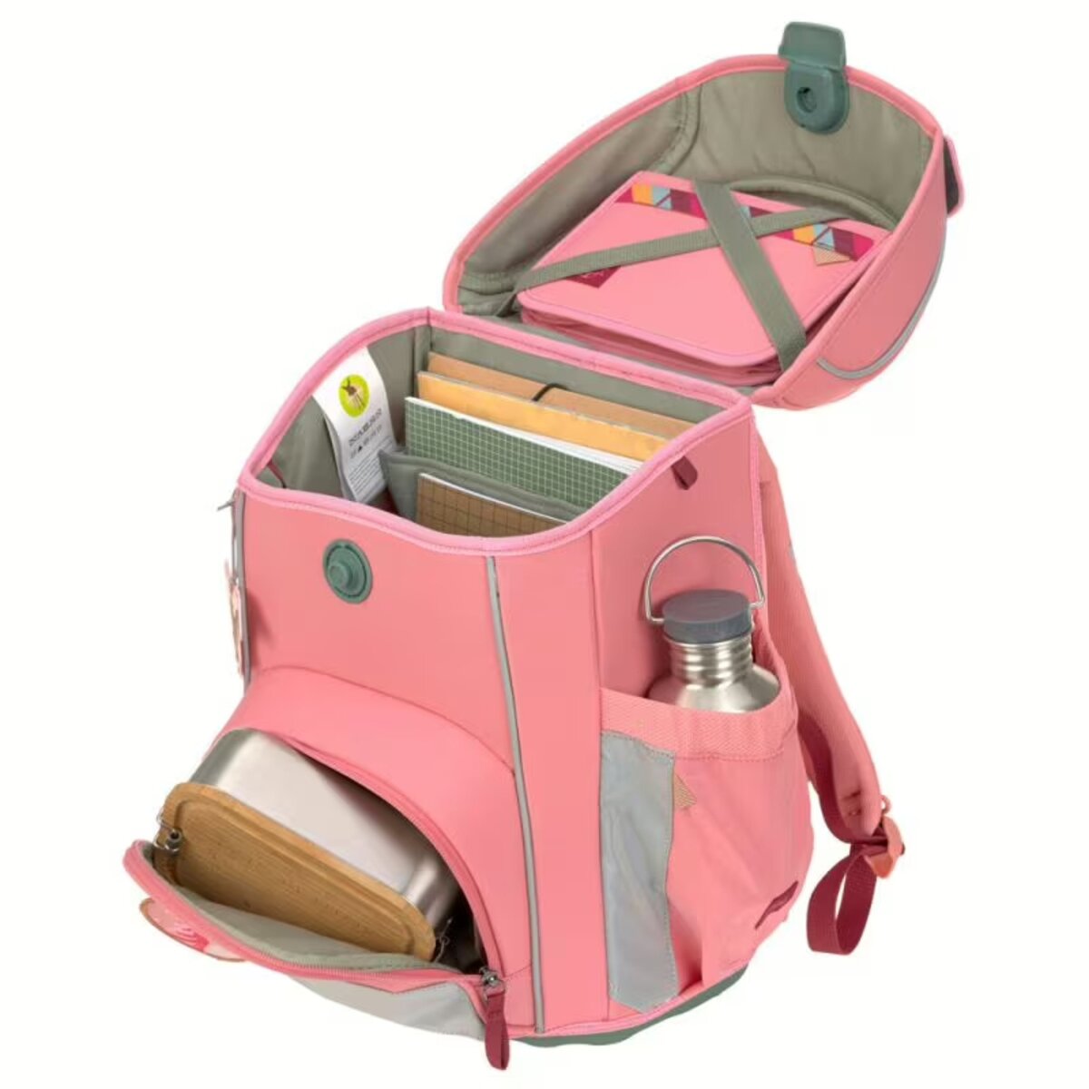Dieser Schulranzen macht das Abenteuer Schule für Ihr Kind noch aufregender und praktischer zugleich. Der LÄSSIG Slim Unique Schulranzen ist speziell für die 1.-4. Klasse entwickelt und überzeugt nicht nur durch seine robuste und zugleich leichte Bauweise, sondern auch durch smarte Funktionen, die für Struktur und Komfort sorgen. Die geräumige Reißverschluss-Vortasche bietet Platz für die Brotdose und alles, was in der Pause schnell zur Hand sein soll. In der großen Seitentasche ist ausreichend Platz für Trinkflasche oder Regenschirm. Im Hauptfach befindet sich ein praktisches Bücherfach, ein Schlüsselclip und ein extra RV-Innenfach für kleine Schätze. Das mitwachsende Rückensystem lässt sich von Größe XS bis L anpassen, sodass der Ranzen mit Ihrem Kind wächst. Dank des höhenverstellbaren Brustgurts und des abnehmbaren, breiten Hüftgurts sitzt der Ranzen auch bei bewegungsfreudigen Kindern sicher und bequem. Die stufenlos verstellbaren Schultergurte und der atmungsaktive Rücken aus Mesh-Material tragen zusätzlich zu einem angenehmen Tragegefühl bei. Für eine hohe Standfestigkeit sorgt der stabile, wasserfeste Boden perfekt für nasse oder raue Untergründe. Sicherheitsbewusste Eltern freuen sich über Reflektoren an der Front und den Seiten, die für gute Sichtbarkeit sorgen. Außerdem ist der Ranzen ein echtes Unikat: Er kann individuell durch Patches und Anhänger gestaltet werden. Das Material besteht aus recycelten PET-Flaschen und ist PFC-frei nachhaltig und umweltschonend.