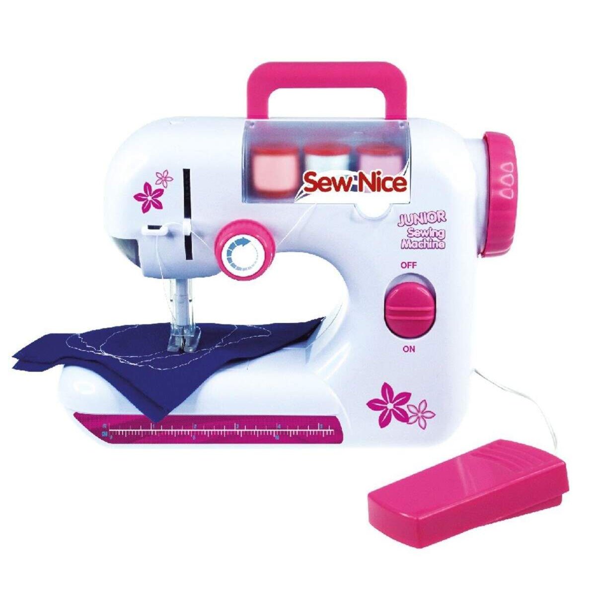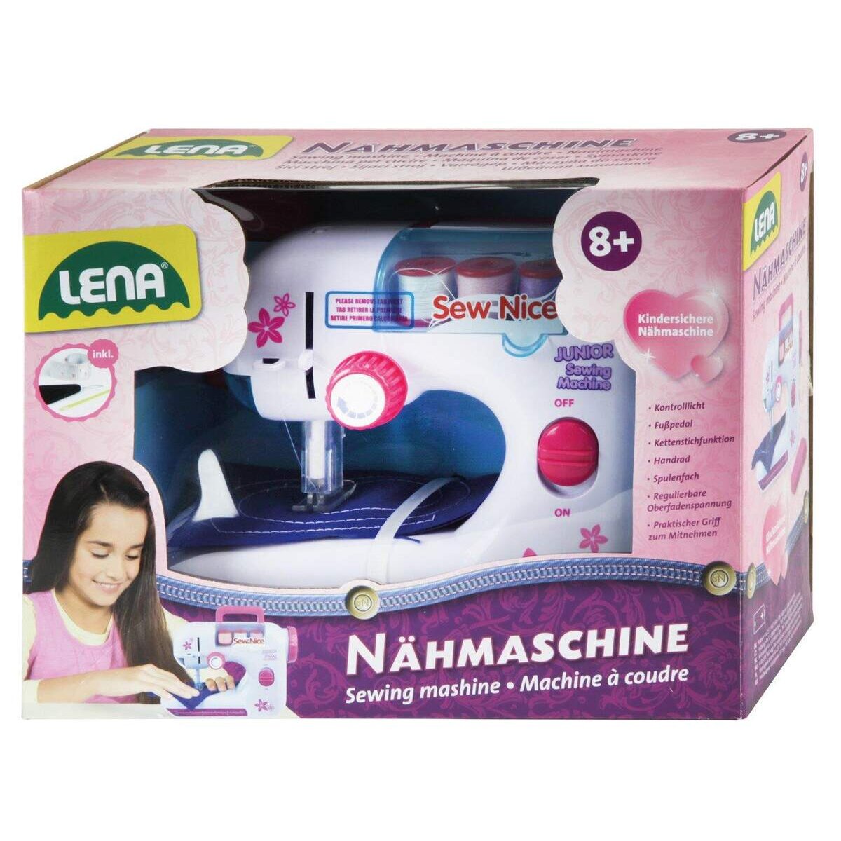 Nähen wie die Großen! Mit dieser wunderbaren batteriebetriebenen Nähmaschine von LENA können schon Mädchen ab 8 Jahren das Nähen lernen und zu kleinen Modedesignerinnen werden. Dazu ist die Maschine mit einem Kontrolllicht, einer Auffädelhilfe, einer Schutzabdeckung am Fuß, einem Fußpedal, einen An-Aus-Knopf, einem Handrad und einem Spulenfach ausgestattet. Ein Maßband, drei Nähgarne, eine Kunststoffnadel und eine ausführliche, bebilderte Anleitung in 12 Sprachen sind ebenfalls mit dabei. Für den Betrieb werden 4 AA Batterien benötigt, welche nicht im Lieferumfang enthalten sind. Durch den praktischen Griff kann die Nähmaschine ganz leicht mitgenommen werden, wenn es zum Beispiel zur besten Freundin oder auf Reisen geht. Das Design ist hochmodern und sie hat eine mädchengerechte Farbgebung in Weiß und Pink. Auf so ein schickes Gerät ist sicherlich jedes Mädchen stolz und wird gerne damit die ersten Nähversuche ausprobieren. So wird auch gleich mit diesem pädagogisch wertvollen Lernwerkzeug die Geschicklichkeit, Kreativität und Geduld gefördert. Große Freude und Zufriedenheit bereiten dann bestimmt auch die ersten gelungenen Modedesigns. Verpackt ist die schöne Kindernähmaschine in einer attraktiver Faltschachtel mit Sichtfenster mit den Maßen von ca. 26 x 11 x 19,5 cm.