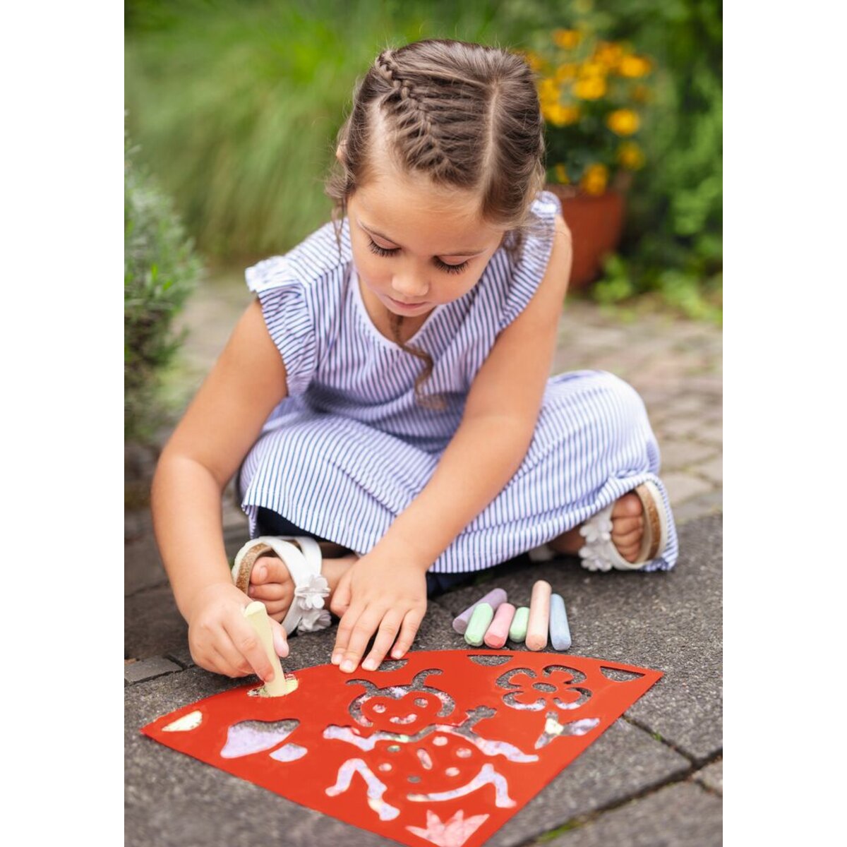 + 4 Schablonen und 6 Stück Glitzer-Straßenmalkreide in verschiedenen Farben