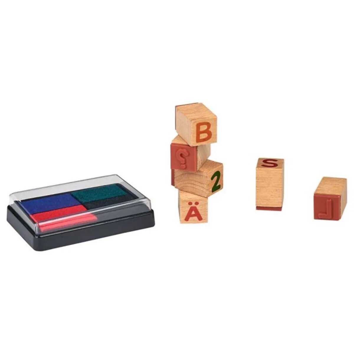Dank des vierfarbigen Stempelkissens sind dem Stempelspaß keine Grenzen gesetzt. Jeder Stempel ist aus robustem Buchenholz gefertigt und perfekt für kleine Kinderhände geeignet. Ob für die nächste Geburtstagseinladung, die Postkarte an die Großelternoder zum Aufpeppen des selbstgemalten Bildes: Die Stempel sind vielseitig einsetzbar und eignen sich dank der schön gestalteten Geschenkbox ideal als kleines Geschenk für die Schultüte oder Mitbringsel für künstlerische Kinder.