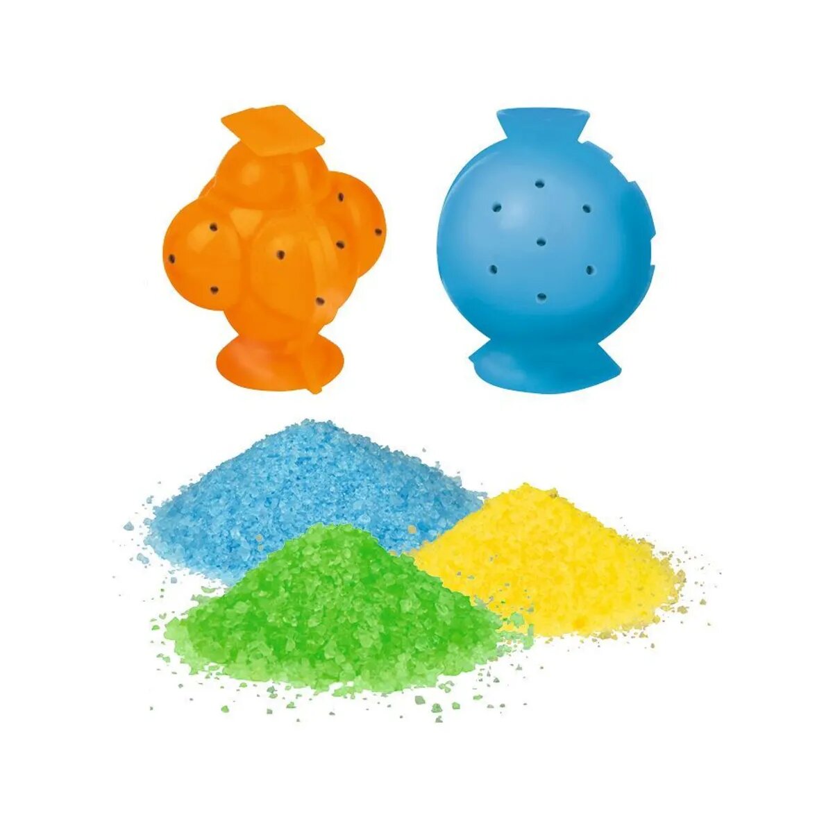 Einen Flummi selbermachen? Dieses Set macht’s möglich! Einfach das Granulat in die Form streuen, das Ganze ins Wasser legen, danach öffnen und schon kann der Hüpfspaß mit dem Flummi beginnen. Das DIY-Set zur Flummiherstellung enthält drei Granulatfarben für farbenfrohe Flummis sowie zwei verschiedene Formen. Auf den beiliegenden spannenden Informationen lernen Kinder, wie aus Granulat und Wasser durch Adhäsion ein Flummi entstehen kann. Cooler Spielspaß und Lernen gehen hier Hand in Hand!