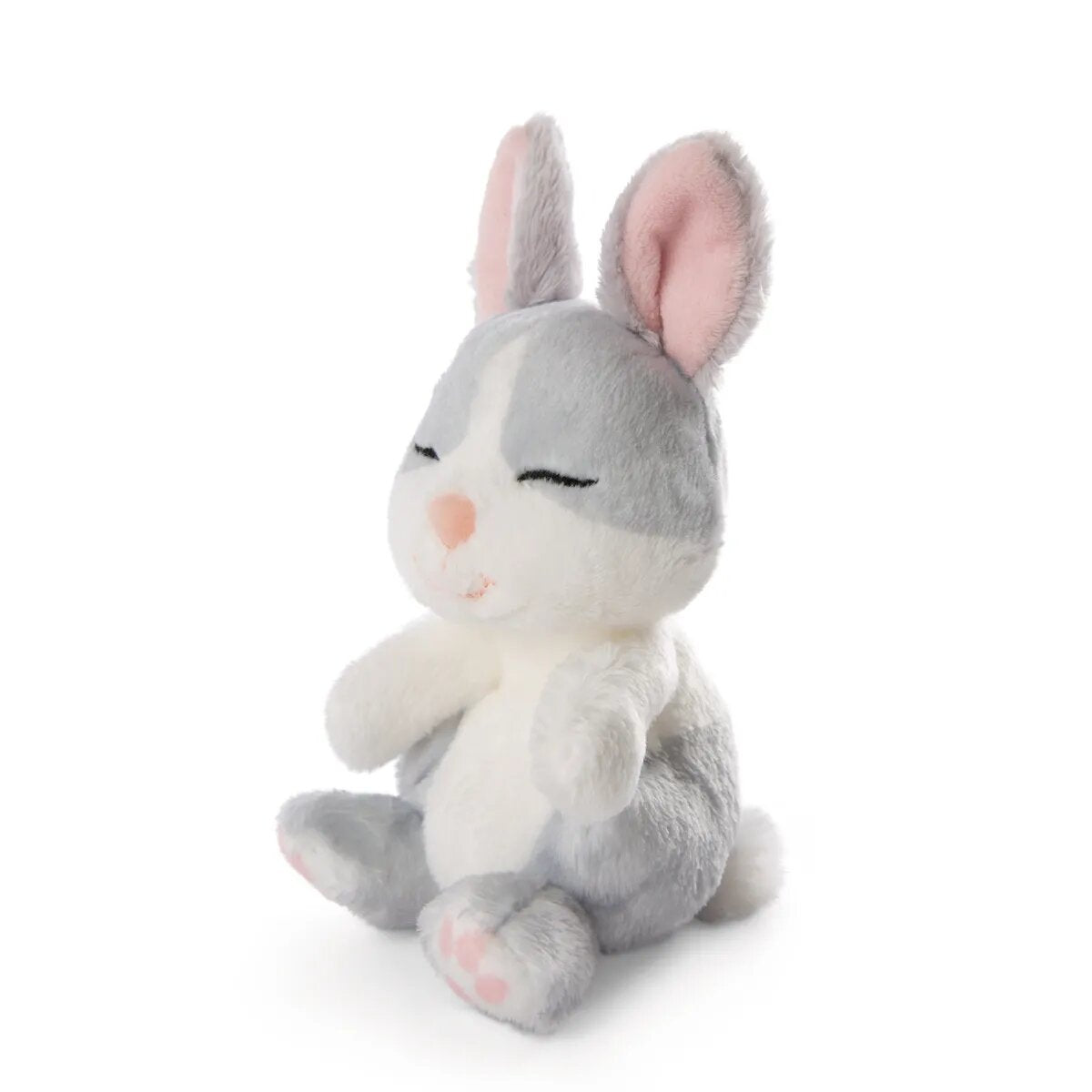 Müde bin ich, geh zur Ruh', schließe meine Äuglein zu! Das flauschig weiche Plüsch-Häschen mit grauer-weißer Fellfarbe verzaubert Klein und Groß mit seinem extrem niedlichen Gesichtsausdruck und den gestickten Schlafaugen. Dem 12cm großen Mümmler kann man es nicht verdenken, dass er es sich in dem grünen Plüschkörbchen so richtig gemütlich gemacht hat. Häschen und Nest sind einzeln bespielbar und aus hochwertigen Materialien gefertigt. Die detailgetreue Verarbeitung garantiert einen hohen Kuschel- und Spielfaktor.