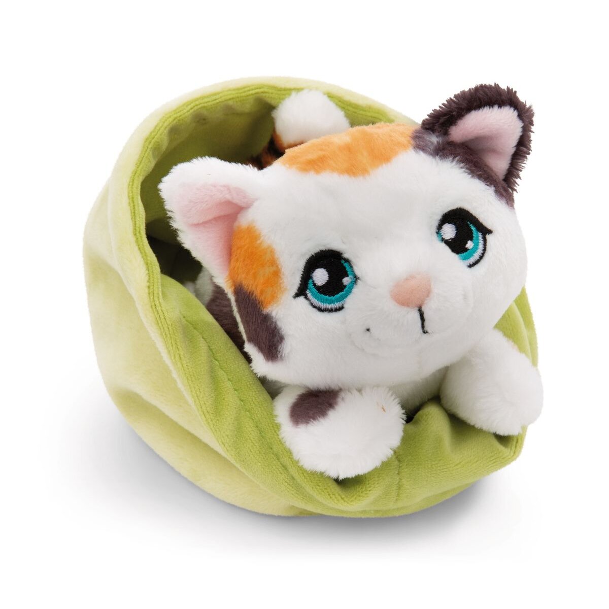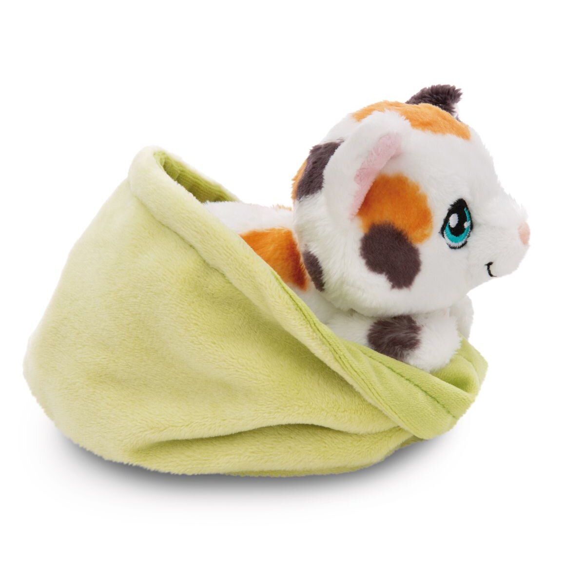 NICI Kuscheltier Katze gefleckt 12cm im Körbchenhellgrün