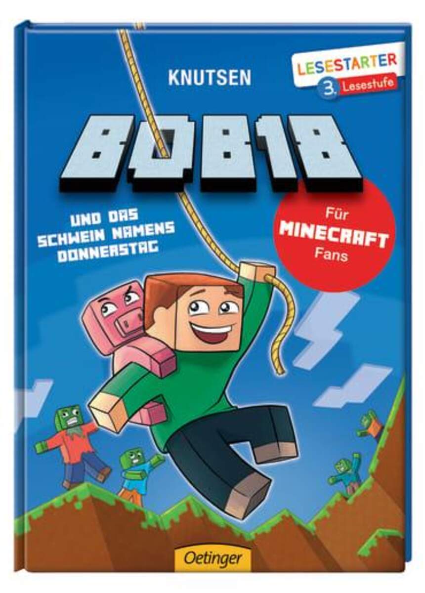 Trend-Spiel Nr.1 lockt vom PC zum Buch: Lesenlernen mit Minecraft! Bob18 landet auf einer einsamen Insel. Er kann sich nicht erinnern, wie er hierher gekommen ist. Als er seine Umgebung erkundet, fühlt er sich beobachtet. Er findet eine Axt, fällt Bäume, baut sich einen Unterschlupf. Kaum fertig, bekommt er Besuch von einem Schwein namens Donnerstag, das Gruselgeschichten liebt und Zombies jagen möchte. Also ziehen die beiden los, ausgestattet mit einem selbstgemachten Holzschwert, um ein Dorf vor Zombies, Creepern und anderen unangenehmen Monstern zu bewahren – ein großes Abenteuer beginnt! Die Lesestarter von Oetinger motivieren auch leseschwache Kinder zum Lesen. Wie? Mit bekannten Autoren, starken Charakteren und populären Themen, die Kinder im Alter von fünf bis zehn Jahren begeistern. Und mit vielen Bildern, Spielen und Leserätseln. Ein absolutes Muss für Minecraft-Fans: Das Computerspiel gibt es nun als Buch für Erstleser, das mit vielen farbigen Illustrationen im Comic-Stil wirklich jeden Lesemuffel abholt. Mit 16 Seiten Leserätseln und Lesespielen. Kein offizielles Minecraft-Produkt. Nicht von Mojang genehmigt oder mit Mojang verbunden.