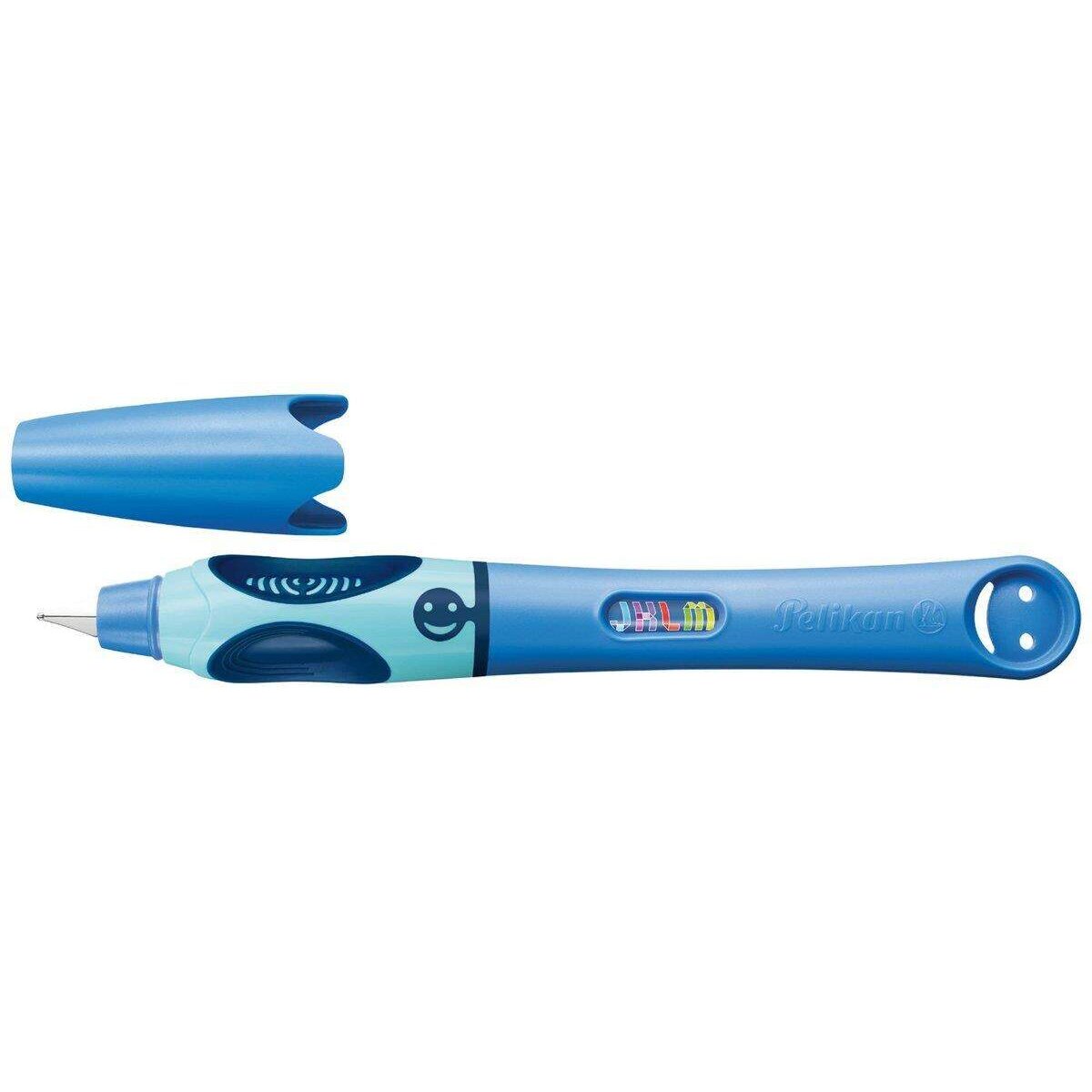 Das Pelikan Griffix System Schreiben ist eine motorische Höchstleistung, Schreibenlernen mühevoll und anstrengend. Um den Schreiblernprozess zu unterstützen, hat Pelikan gemeinsam mit Wissenschaftlern und Lehrern das 4-stufige Griffix-Schreiblern-System für Kinderhände entwickelt. Das ergonomische Design der Schreibgeräte fördert die richtige Handhaltung für natürliches und lockeres Schreiben in jeder Lernphase, denn alle Stifte – vom Wachsschreiber über den Bleistift und Tintenschreiber bis hin zum Füller - sind optimal auf die individuelle Lernstufe des Kindes angepasst. Dank des einheitlichen Griffmulden-Konzepts muss das Kind die Handhaltung nicht mehr ändern. Das Gute-Laune Gesicht zeigt, dass der Stift richtig gehalten wird. Das Schreiblern-System gibt es für Rechts- und Linkshänder. Der Griffix Füllhalter (Stufe 4) Der Griffix Füllhalter von Pelikan stellt die höchste Stufe im Schreiblern-Prozess dar. Beim Schreiben mit dem Füller ist es wichtig, dass die entsprechenden Bewegungsabläufe koordiniert und mit Schwung erfolgen. Dann gleitet die Feder leicht über das Papier und Kinder schließen den Schreiblernprozess mit dem Erlernen einer formgerechten und schönen Schrift ab. Der Griffix Füllhalter hat eine robuste Edelstahlfeder, die auch bei ungeübten Füller-Anfängern formstabil bleibt. Damit die Aufmerksamkeit von Zeit zu Zeit auf den Tintenstand gelenkt wird, sind die Patronen für den Griffix Füllhalter mit verschiedenen Motiven versehen. Diese sind durch das Tintensichtfenster erkennbar. Außerdem gibt es den Griffix-Füllhalter in vier tollen Farben. So erhalten Kinder einen Füllhalter, der nicht nur gut schreibt, sondern auch trendig aussieht. Lieferumfang: - Füllhalter - Patrone