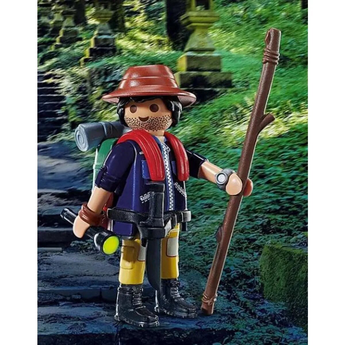 PLAYMO-Friends Spielfigur Abenteurer mit Wanderstock und Taschenlampe.
