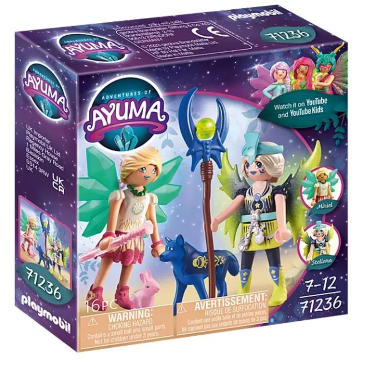 Der Nebel kommt nach Ayuma und auch Crystal Fairy Miriel und Moon Fairy Stellara sind mitten im Geschehen. Eigentlich sind die beiden beste Freundinnen, doch bei lila Mond verwandelt sich Stellara in eine gemeine Fee und wendet sich gegen ihre Freunde. Am nächsten Tag kann sie sich jedoch an nichts mehr erinnern. Da muss sich Miriel mit ihrem Seelentier, dem Kristallkaninchen, etwas einfallen lassen, um Stellara zu helfen. Mit liebevollen Charakteren, magischen Tieren und tollen Effekten laden die PLAYMOBIL Ayuma-Spielsets zu kreativen Rollenspielabenteuern ein. Fantastischer Spielspaß für Kinder ab 7 Jahren.